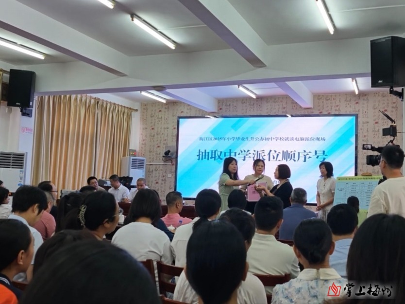 掌上梅州讯 7月11日上午,梅江区2025年小学毕业生升公办初中学校就读电脑派位在区教育局举行。
