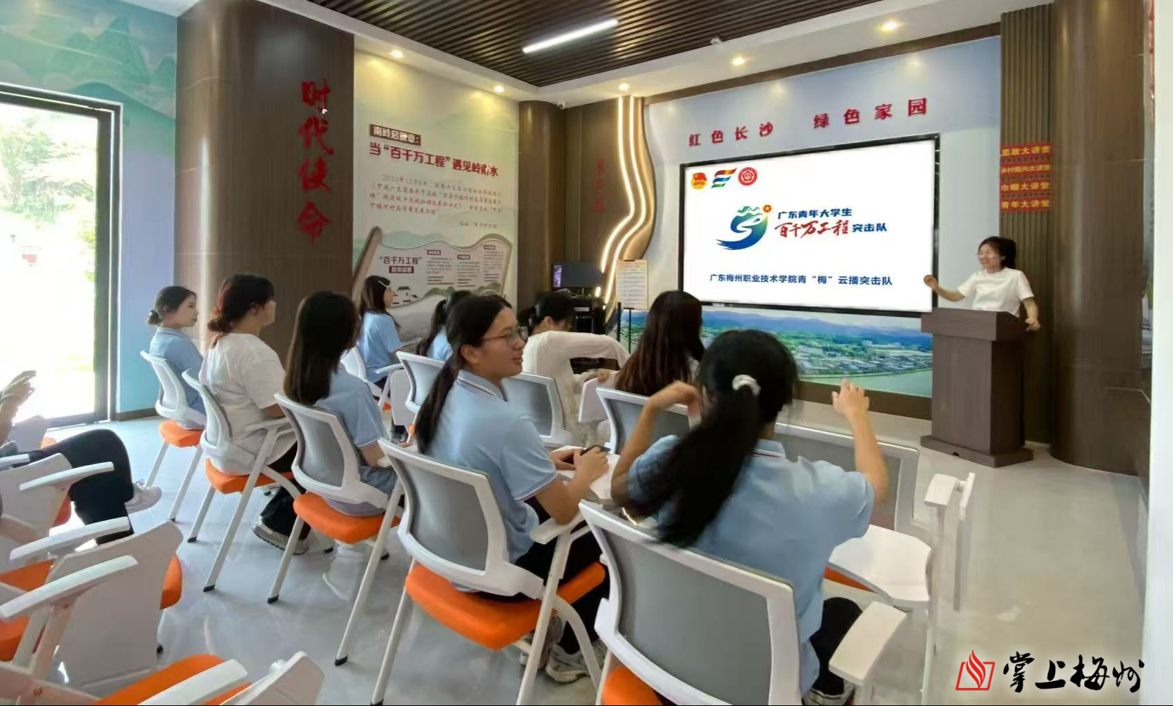 掌上梅州讯 近日,广东梅州职业技术学院财经商贸学院青“梅”云播突击队(以下简称“突击队”)到梅江区长沙镇小密村,开展“三下乡”社会实践活动。这支队伍由声屿直播社团成员以及陈熹、丁筠、叶明珠等指导老师组成,他们积极响应“百千万工程”号召,以直播为媒介,为长沙镇的农产品推广和乡村宣传注入新活力。