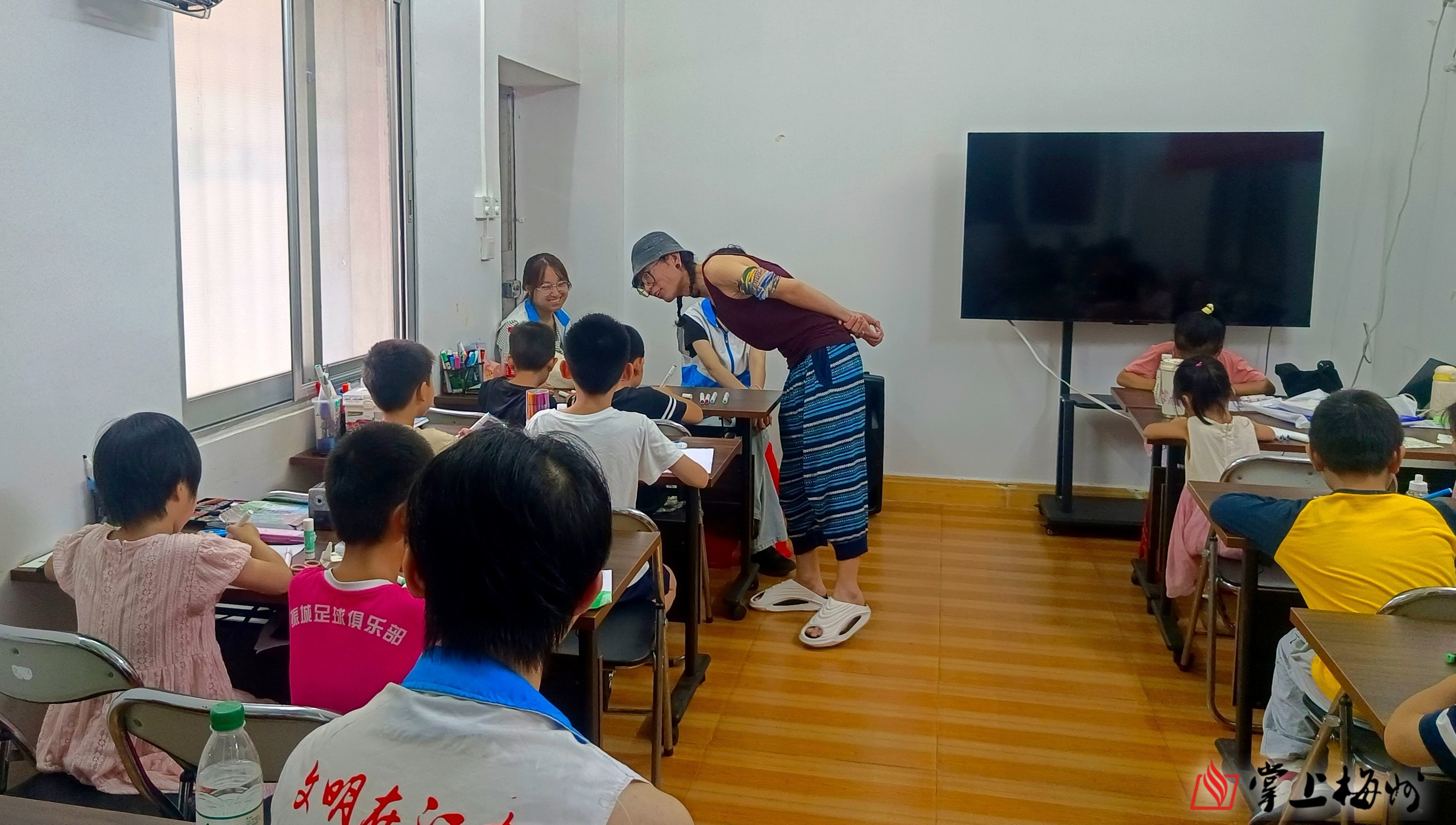 梅南社区联合高校团队精心设计了教学方案,根据儿童年龄特点开设差异化课程,其中面向低龄儿童的《客家美食彩绘》《情绪魔法色卡》等趣味课程,通过游戏化教学培养艺术兴趣;针对高龄儿童的《客家建筑素描》《书法启蒙》等课程,则在帮助他们提升绘画和书法技能的同时,增强文化认同感。
