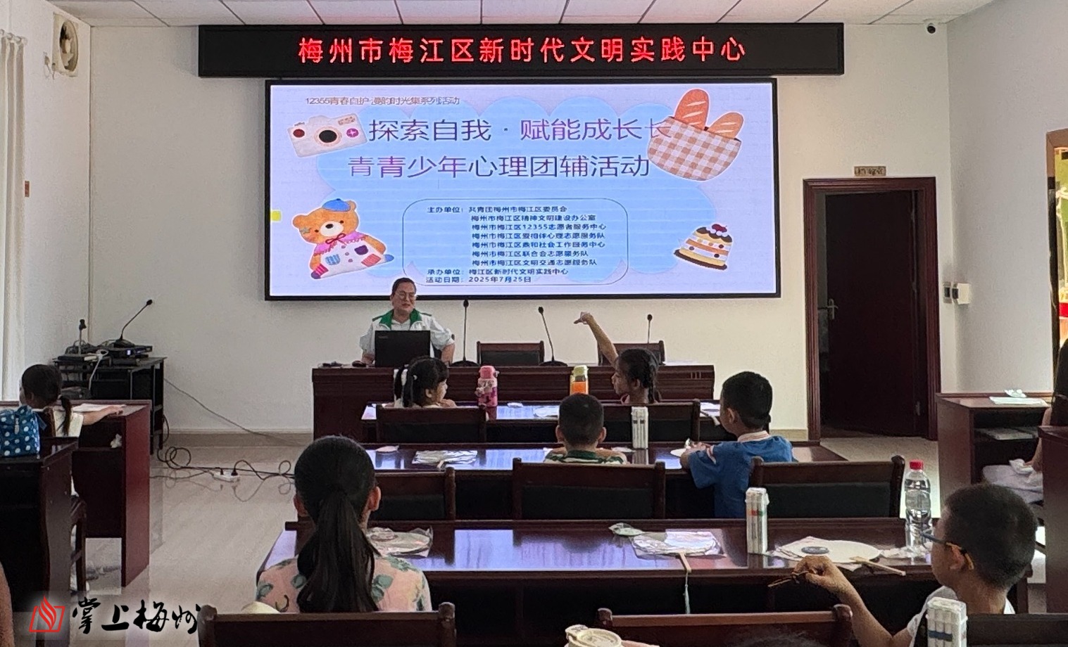 掌上梅州讯 7月25日上午,“探索自我,赋能成长”青少年团体心理辅导活动在梅江区新时代文明实践中心三楼会议室举行。25名6-12岁青少年参与活动。