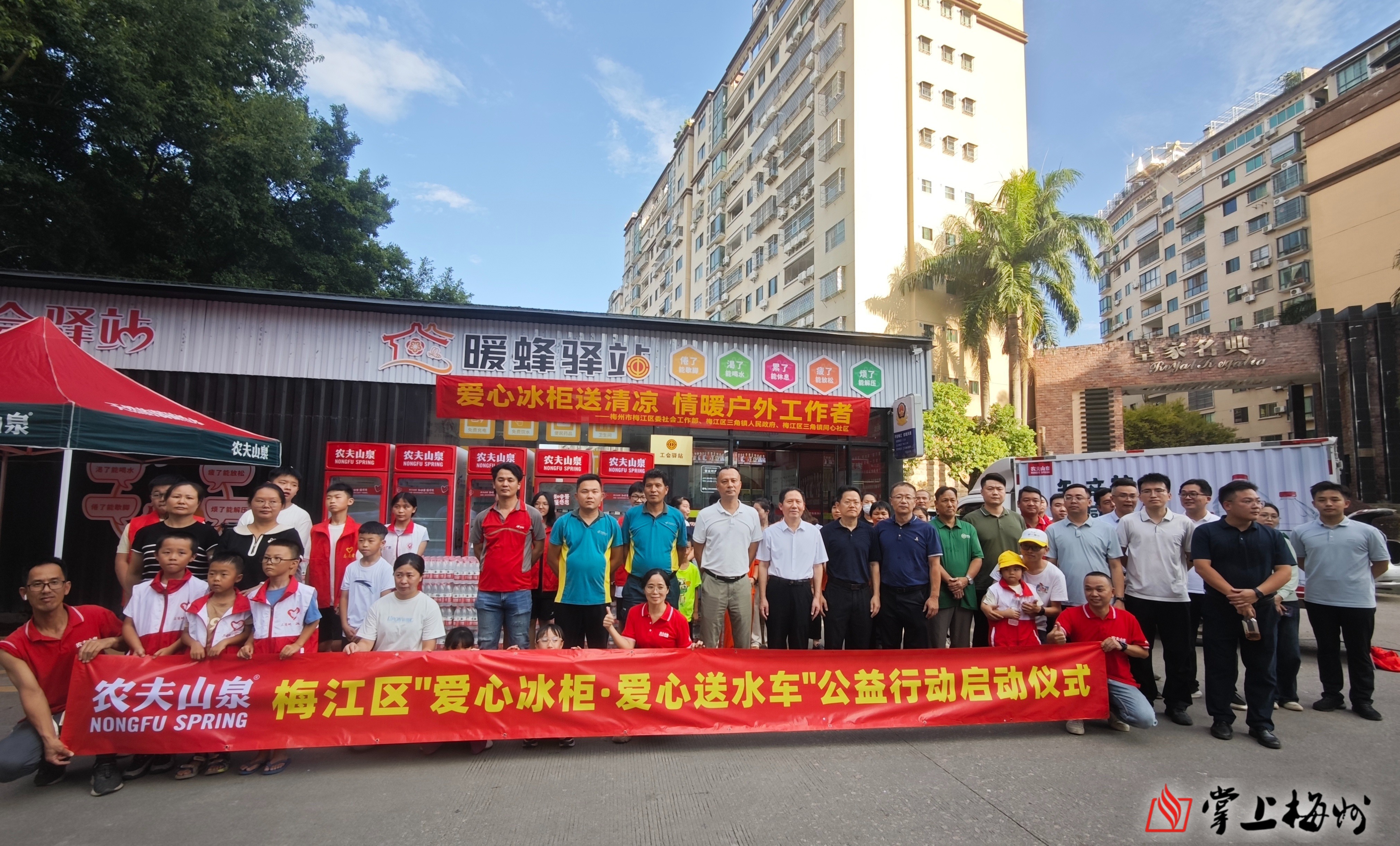 掌上梅州讯 8月7日下午,梅江区“爱心冰柜·爱心送水车”公益行动启动仪式在三角镇同心社区暖蜂驿站举行。本次公益行动由梅江区委社会工作部联合三角镇、市环境卫生管理局、市公安局梅江分局、区市场监督管理局、区交通运输局、区总工会、团区委、区妇联等单位和爱心企业共同发起,旨在创新“固定冰柜+流动送水”模式,为新就业群体和户外工作者送去夏日清凉。