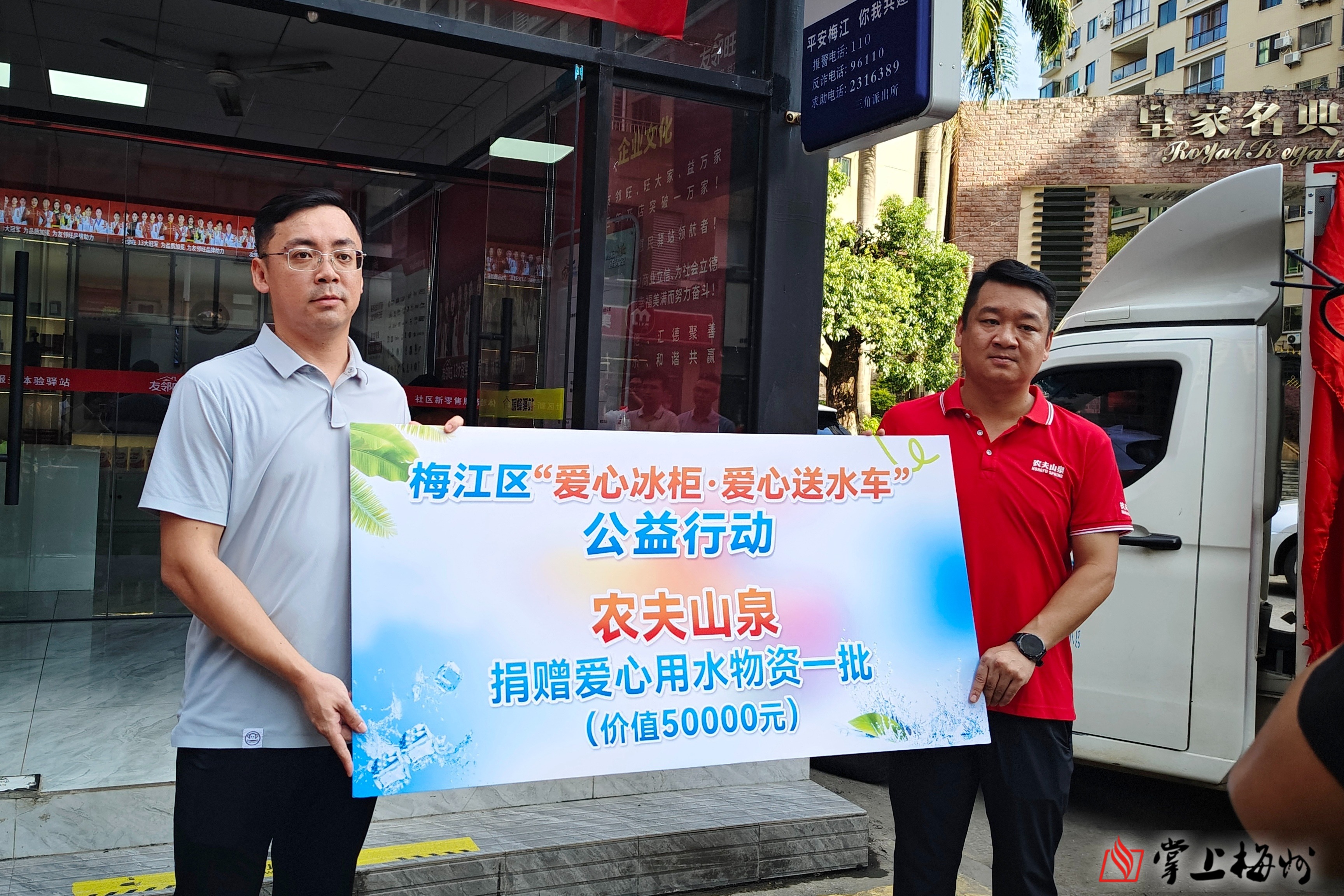 现场进行了爱心捐赠仪式、爱心送水车启用仪式,爱心企业农夫山泉梅州办事处捐赠了矿泉水等防暑物资一批。梅江区委社会工作部部长、区委“两新”工委书记杨祥军表示,本次公益行动由政府搭台、企业助力,通过18个“爱心冰柜”固定站点与“爱心送水车”流动服务相结合的方式,构建起覆盖城区的清凉补给网络。