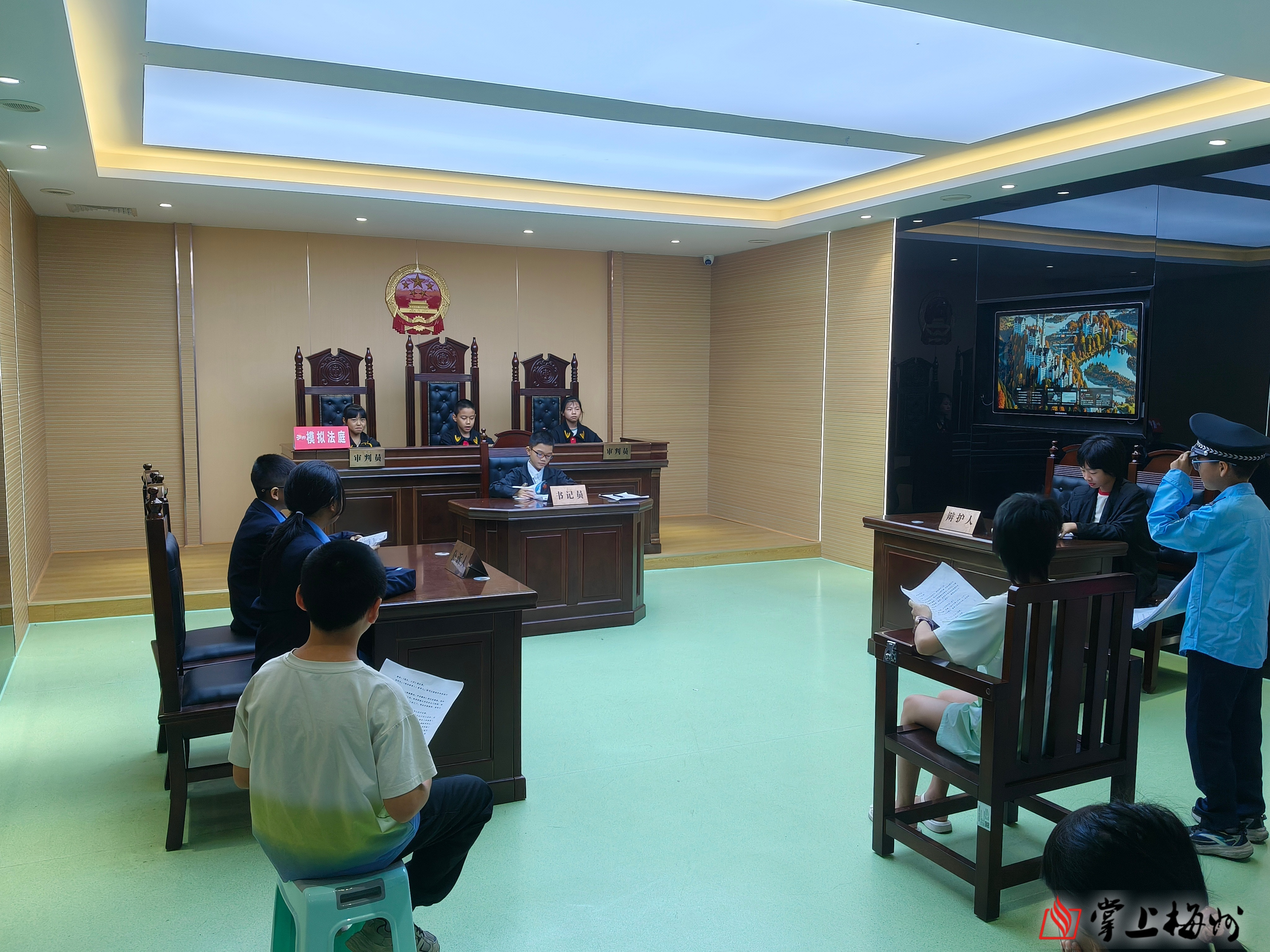 活动为期5天,通过沉浸式体验、互动教学等形式,涵盖法治宣传、心理健康辅导、禁毒教育等多项内容。在法治教育基地,青少年沿“萌芽篇”“叶篇”“花篇”“果篇”的成长轨迹参观学习,结合检察演播厅、模拟法庭、法治VR游乐园等项目,系统了解法律常识、毒品预防、防性侵等知识,并通过绘制法治手抄报深化认知。