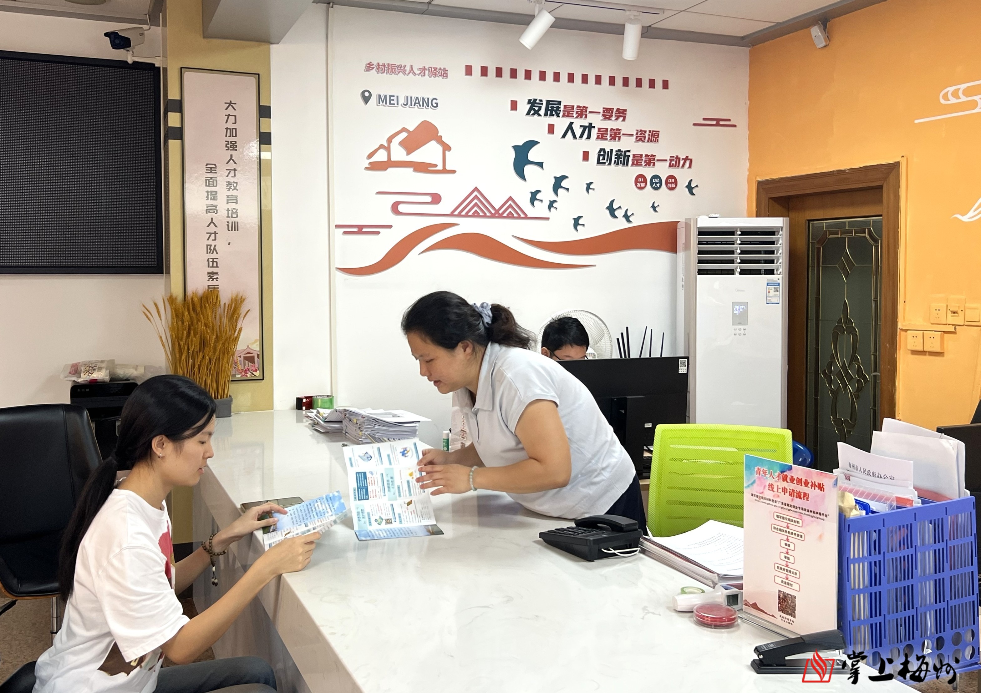梅江区人才驿站工作人员耐心细致解读“免费梅州”等人才政策。