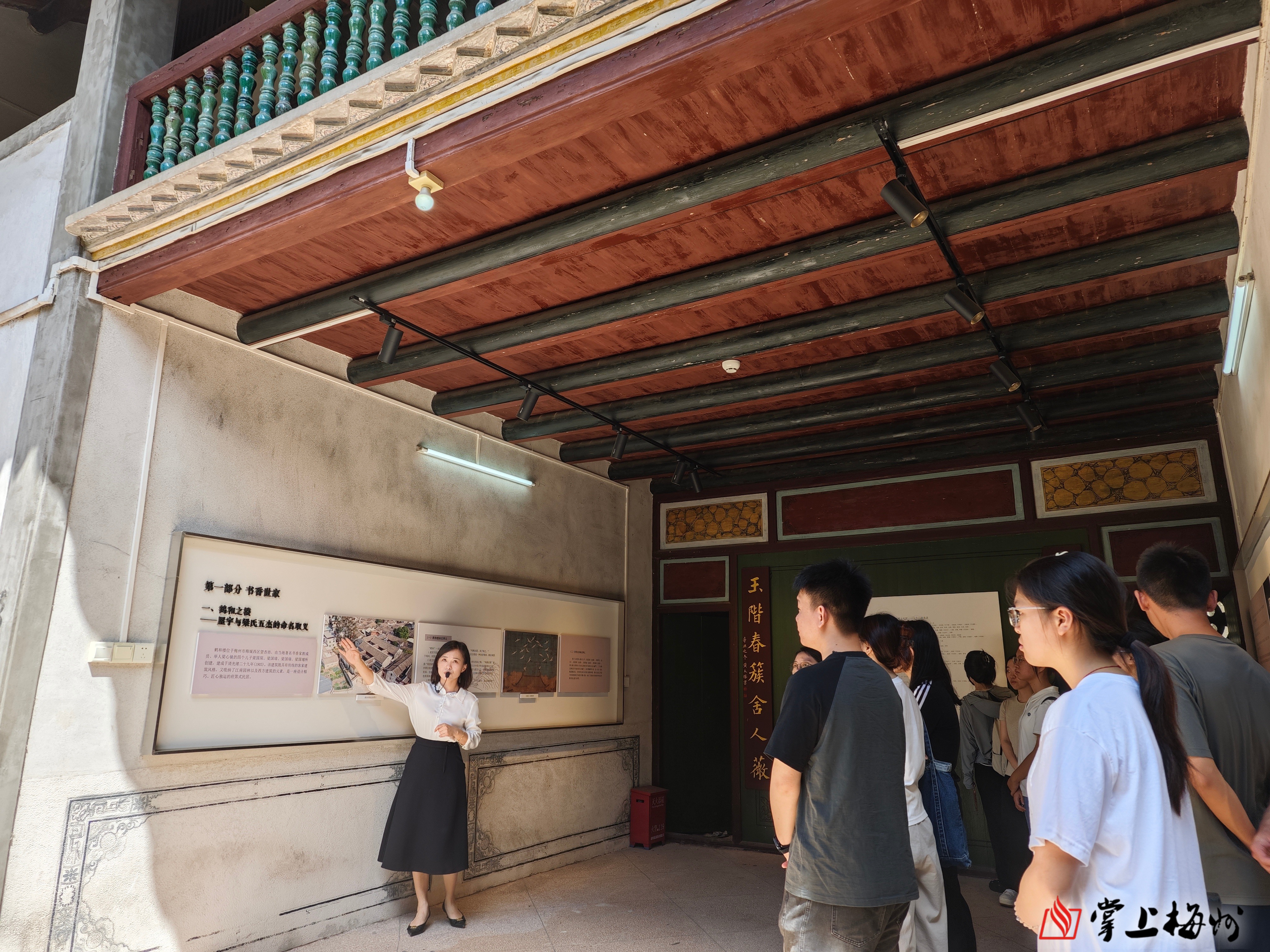 返乡大学生们走进曾宪梓事迹展览馆,曾宪梓博士筚路蓝缕、回馈乡梓的赤子情怀深深触动了在场学子。随后,队伍移步至黄泥墩社区的鹤和楼,梁伯聪先生兴学育才、泽被桑梓的仁风善举令学子们深受感召,加深了他们对客家文化崇文重教、爱国爱乡精神内核的理解。