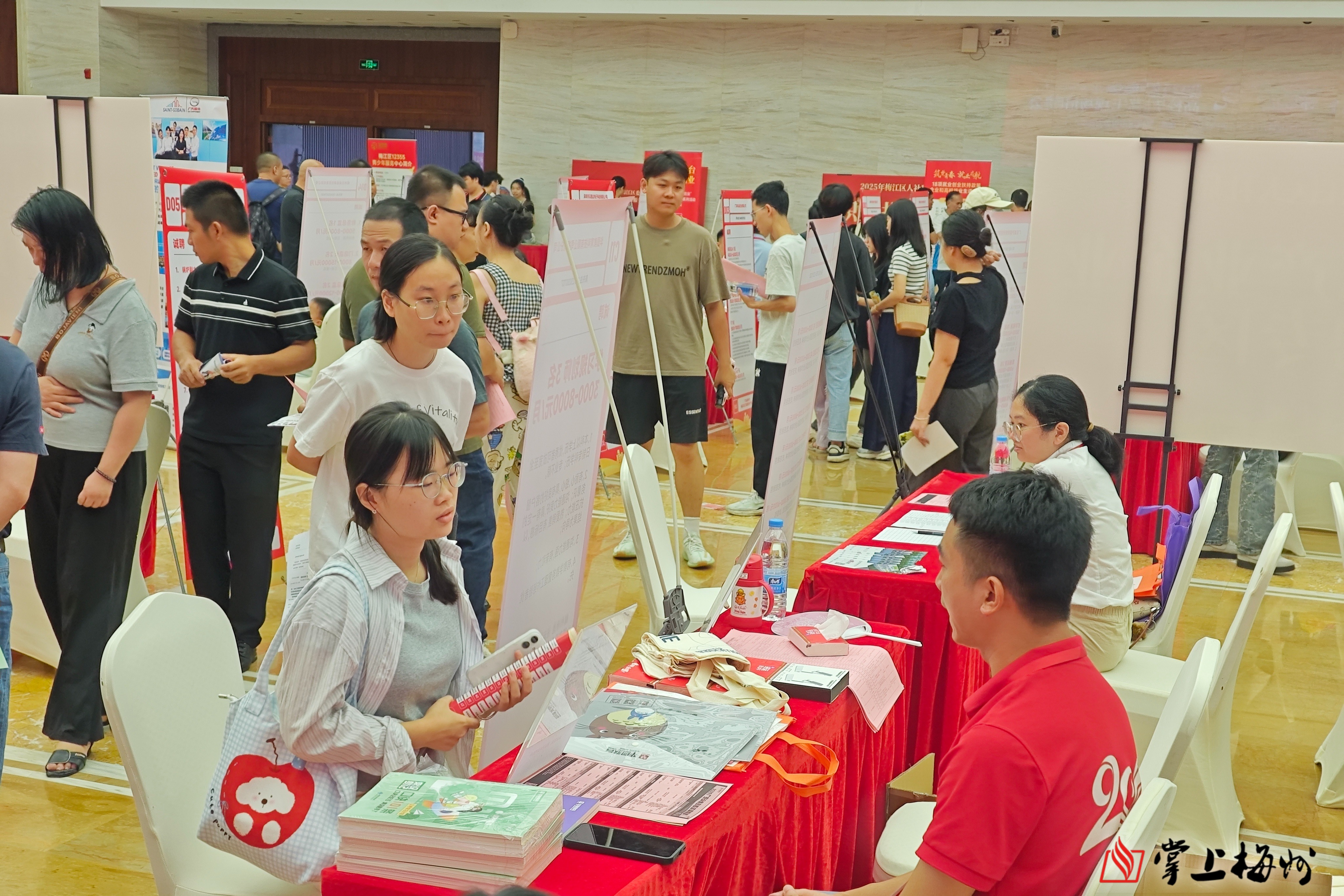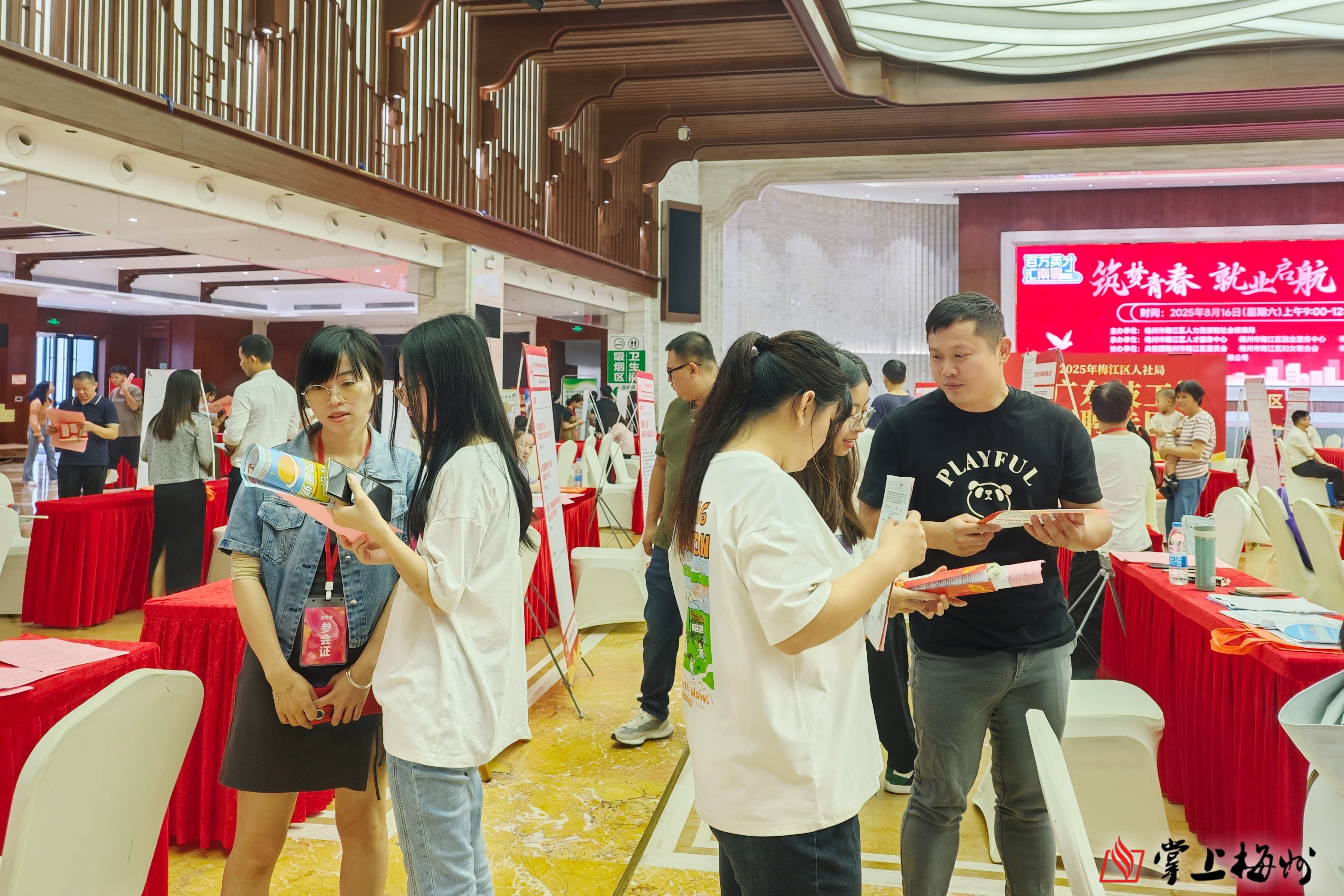 掌上梅州讯 8月16日上午,由梅江区人社局主办,区人才服务中心、区就业服务中心和区社保局承办的“筑梦青春 就业启航”——2025年梅江区高校毕业生现场招聘会在梅州市世界客商中心(梅州市人力资源服务产业园)举行。
