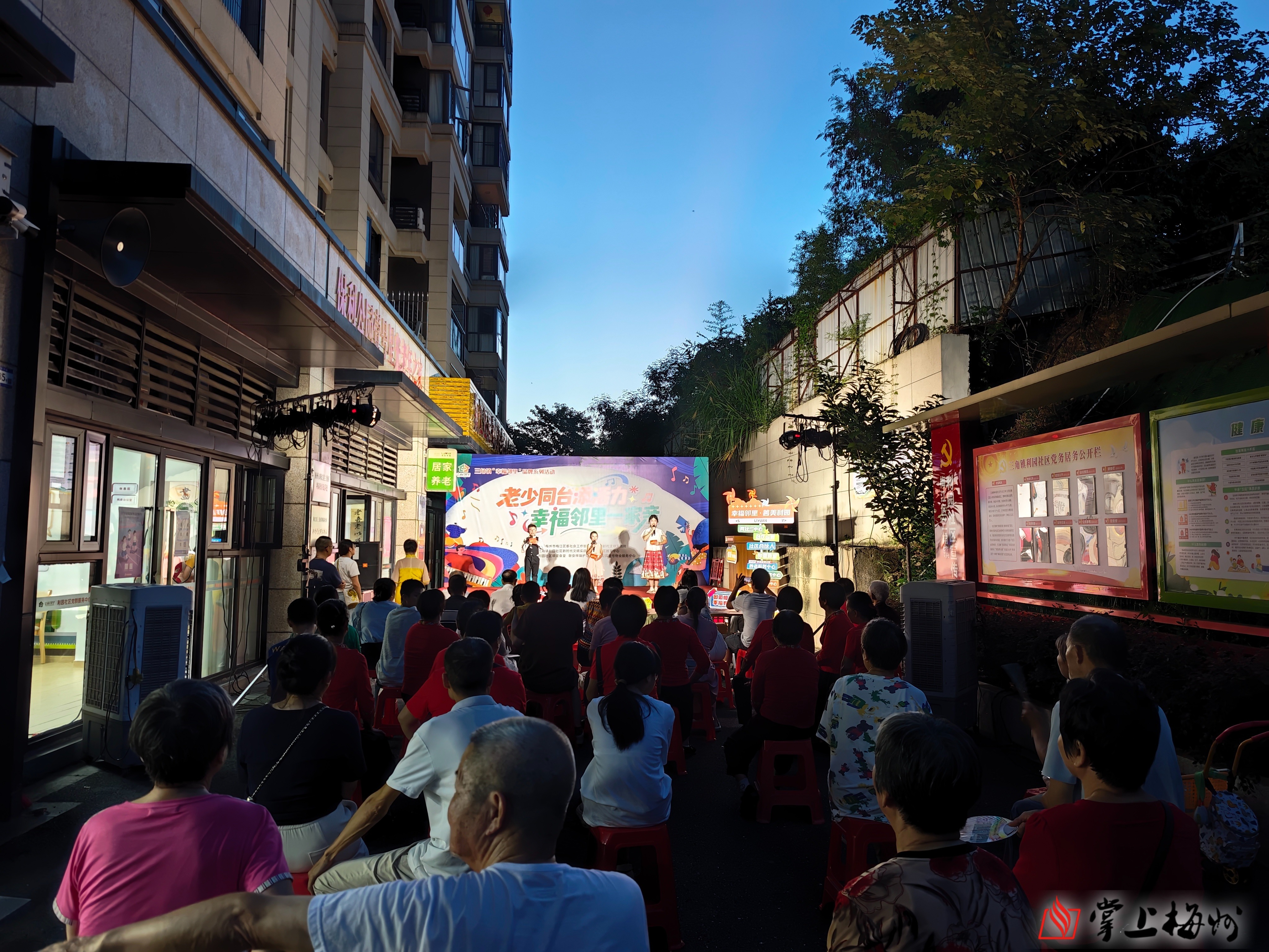 8月16日,梅江区三角镇利园社区党群服务中心门前洋溢着欢声笑语,“老少同台添活力 幸福邻里一家亲”邻里文化主题活动在此举行。该活动是利园社区第二次开展,与首次不同的是,当活动预告消息发布后,许多居民朋友主动报名,争相展示才艺。这份“要我参与”到“我要参与”发自内心热情的转变,正是对“幸福邻里”“居民自治”最生动的诠释!