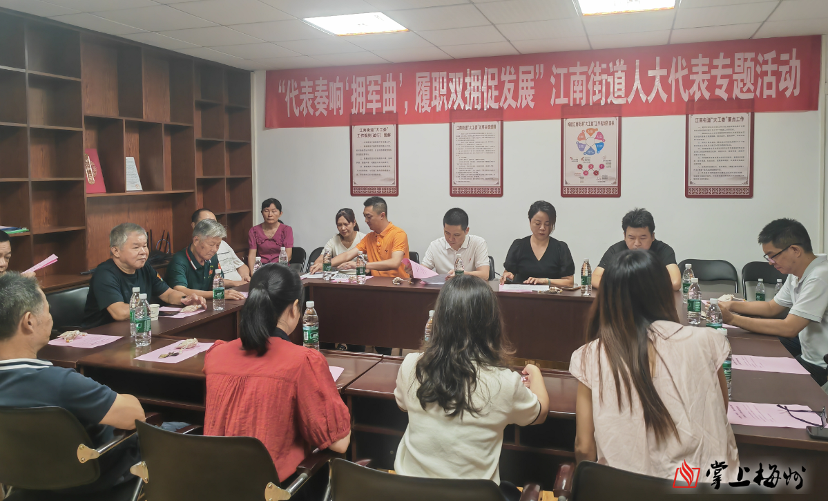掌上梅州讯 8月28日上午,梅江区江南街道人大工委联动辖区内人大代表、企业、社工在梅南社区党群服务中心开展“代表奏响‘拥军曲’,履职双拥促发展”专题活动,人大代表、退役军人、社区居民等参加活动。