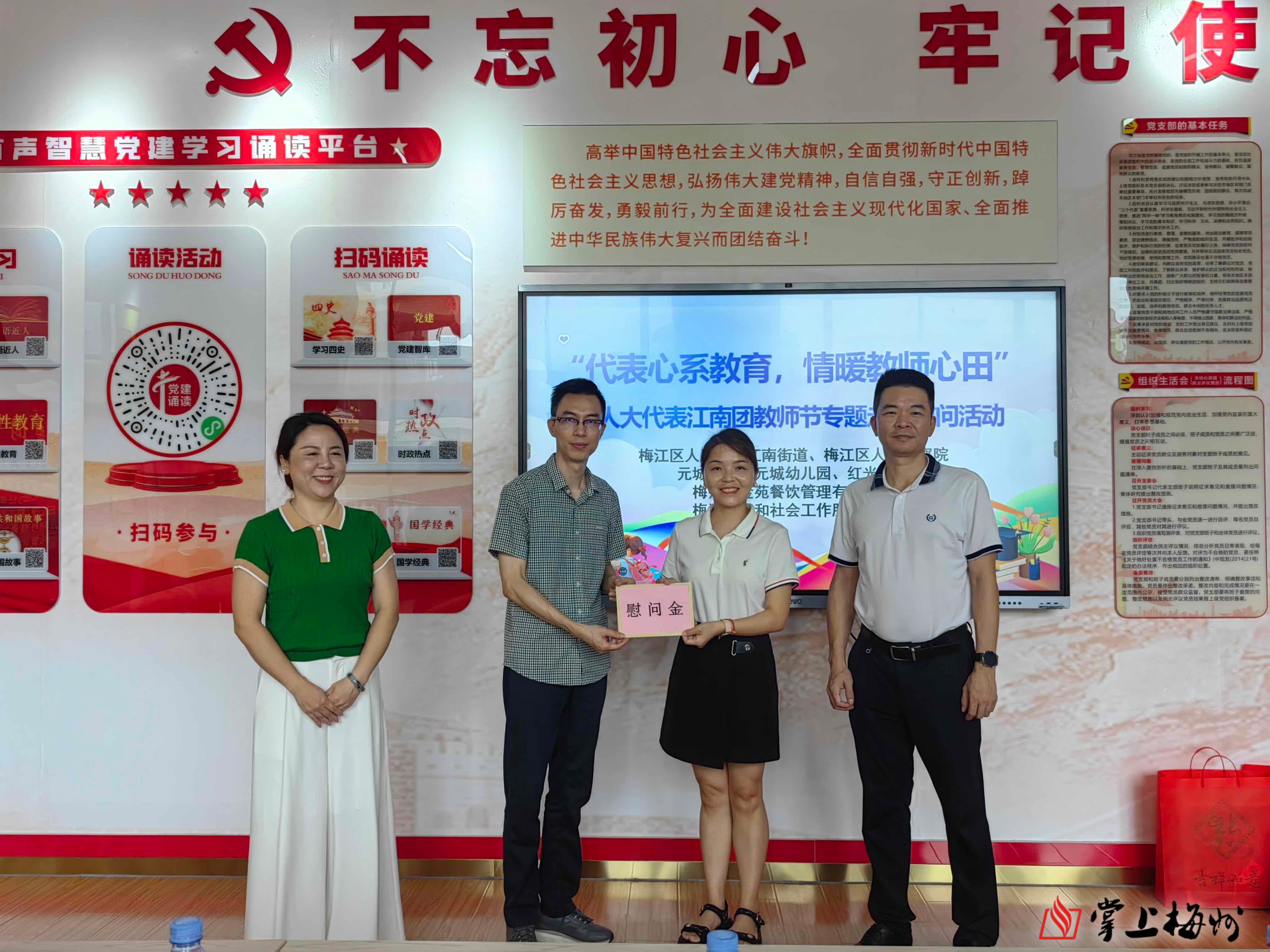 在教师节来临之际,为表达对广大教育工作者的崇高敬意和深切关怀,9月8日上午,梅江区江南街道在元城小学开展“代表心系教育,情暖教师心田”教师节慰问活动。活动邀请了区人大代表江南团成员、区人民检察院代表、元城小学及元城幼儿园教师代表等共同参与。