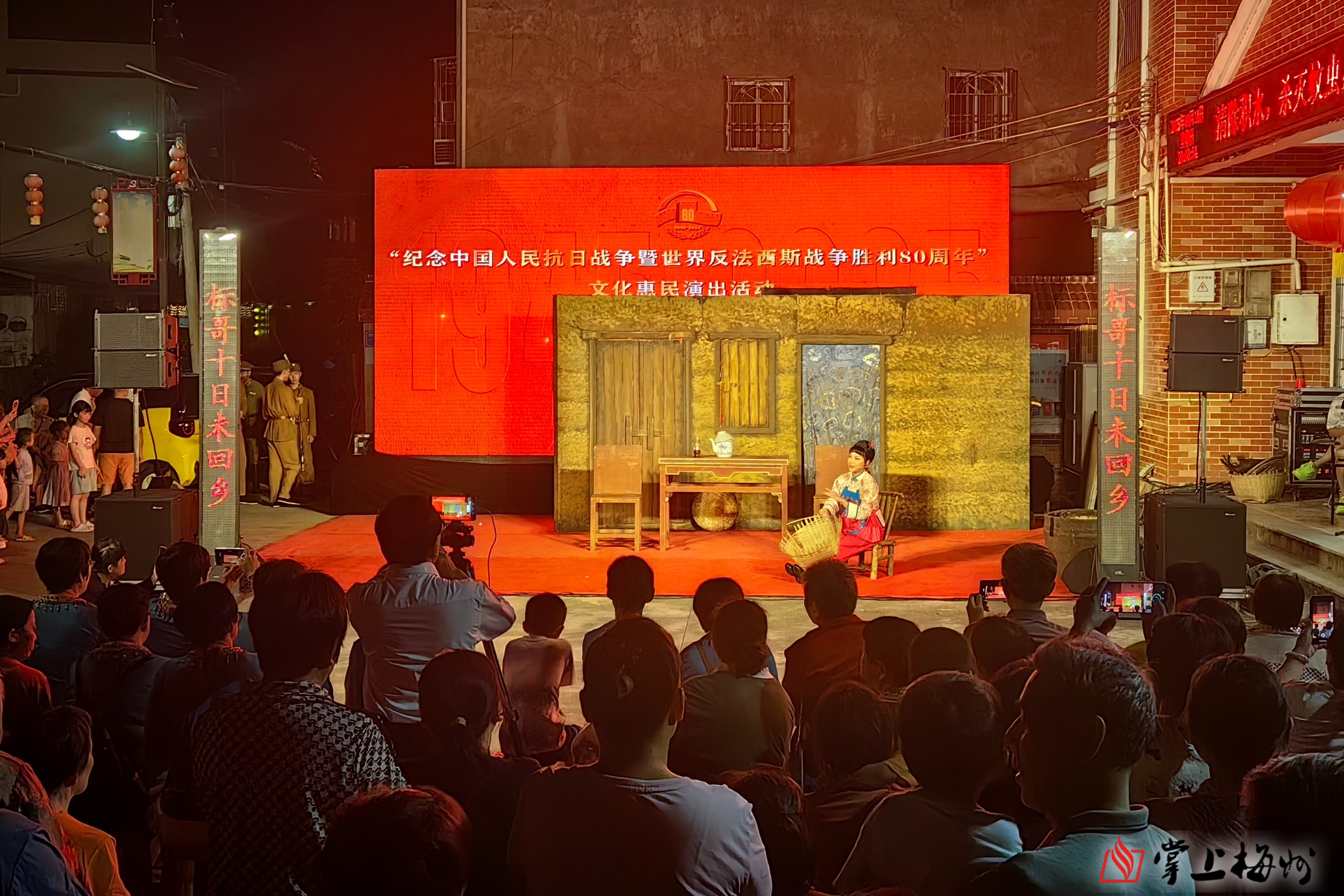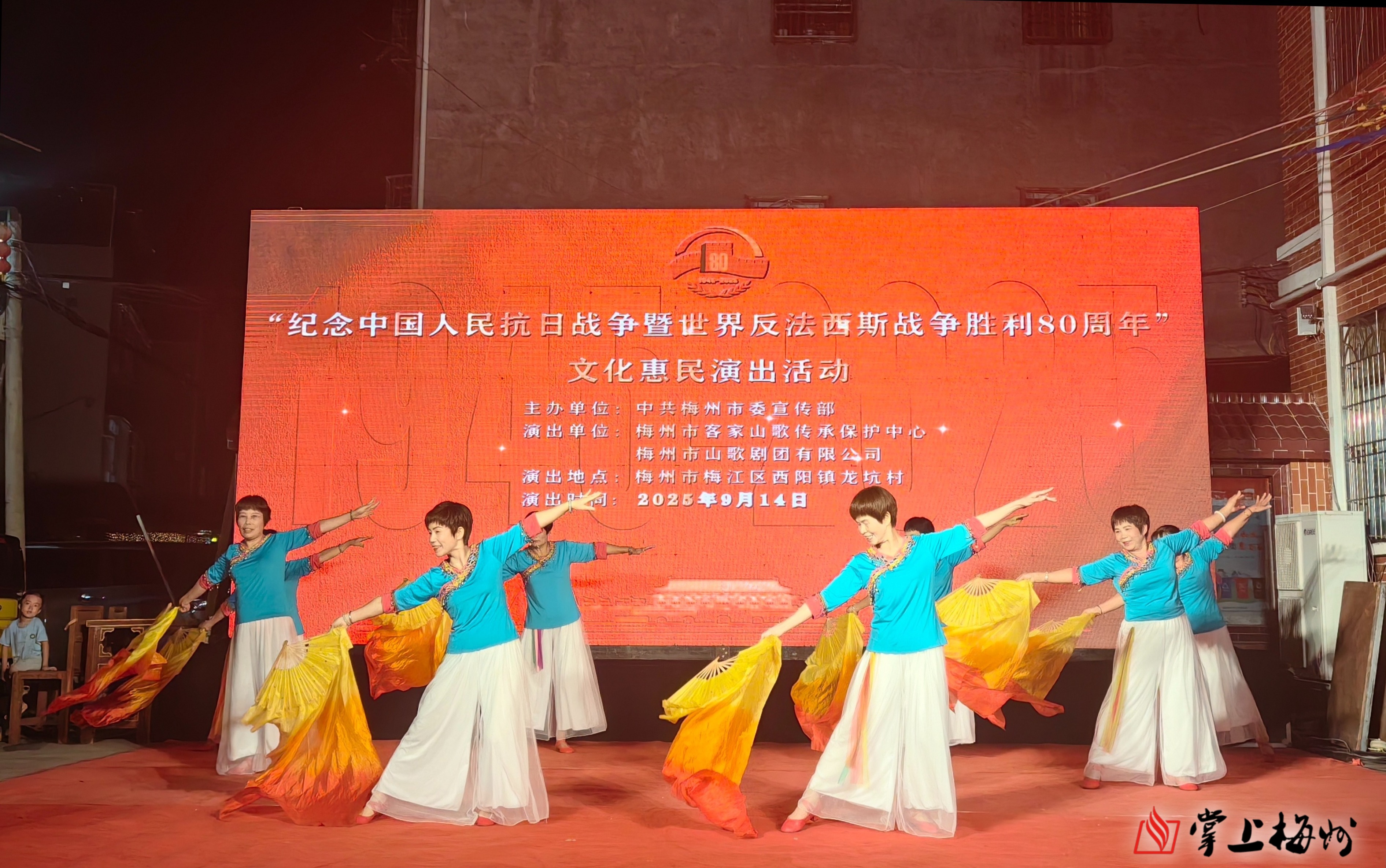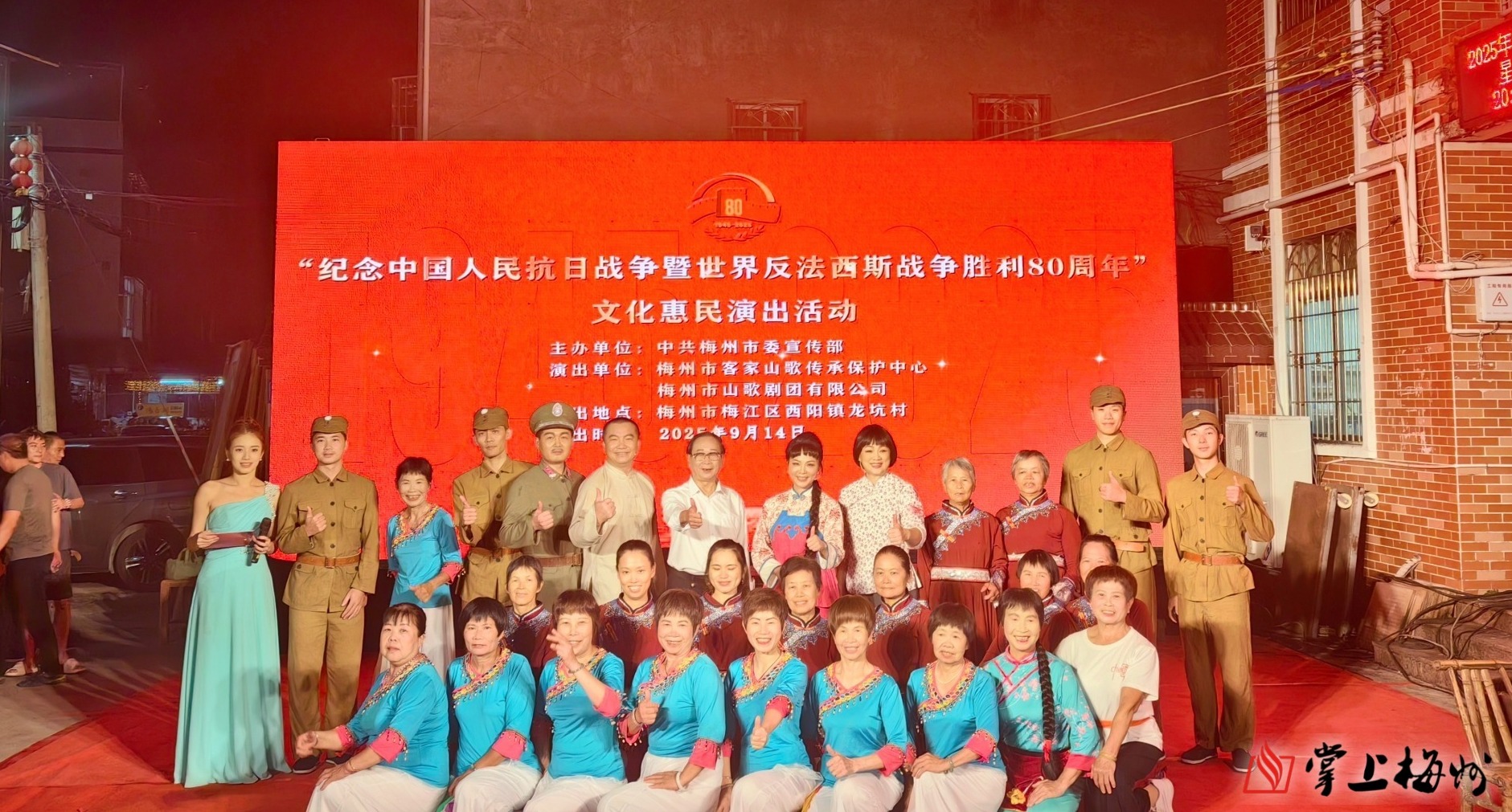 掌上梅州讯 为弘扬伟大抗战精神和爱国主义精神,9月14日晚,“纪念中国人民抗日战争暨世界反法西斯战争胜利80周年”文化惠民演出走进梅江区西阳镇龙坑村,把高品质的文化享受送到父老乡亲家门口。