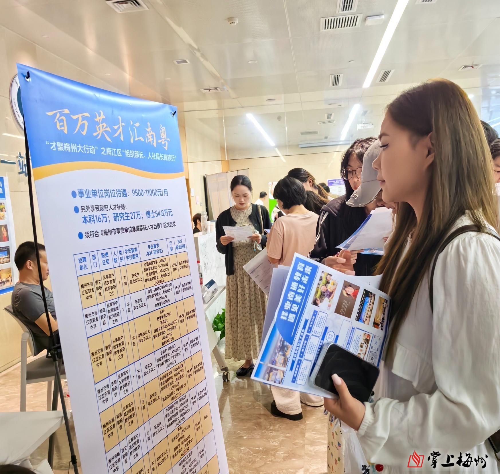 活动现场,共发放“免费梅州”“1+N”人才政策等宣传资料2600余份,10000余名高校毕业生参加双选,梅江区相关企事业单位岗位吸引众多学生关注,投送简历350多份,其中博士学历11人。
