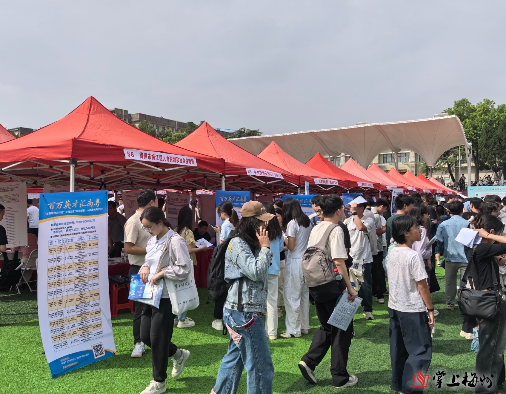华中师范大学“双选会”现场,学生们认真了解梅江区岗位信息。