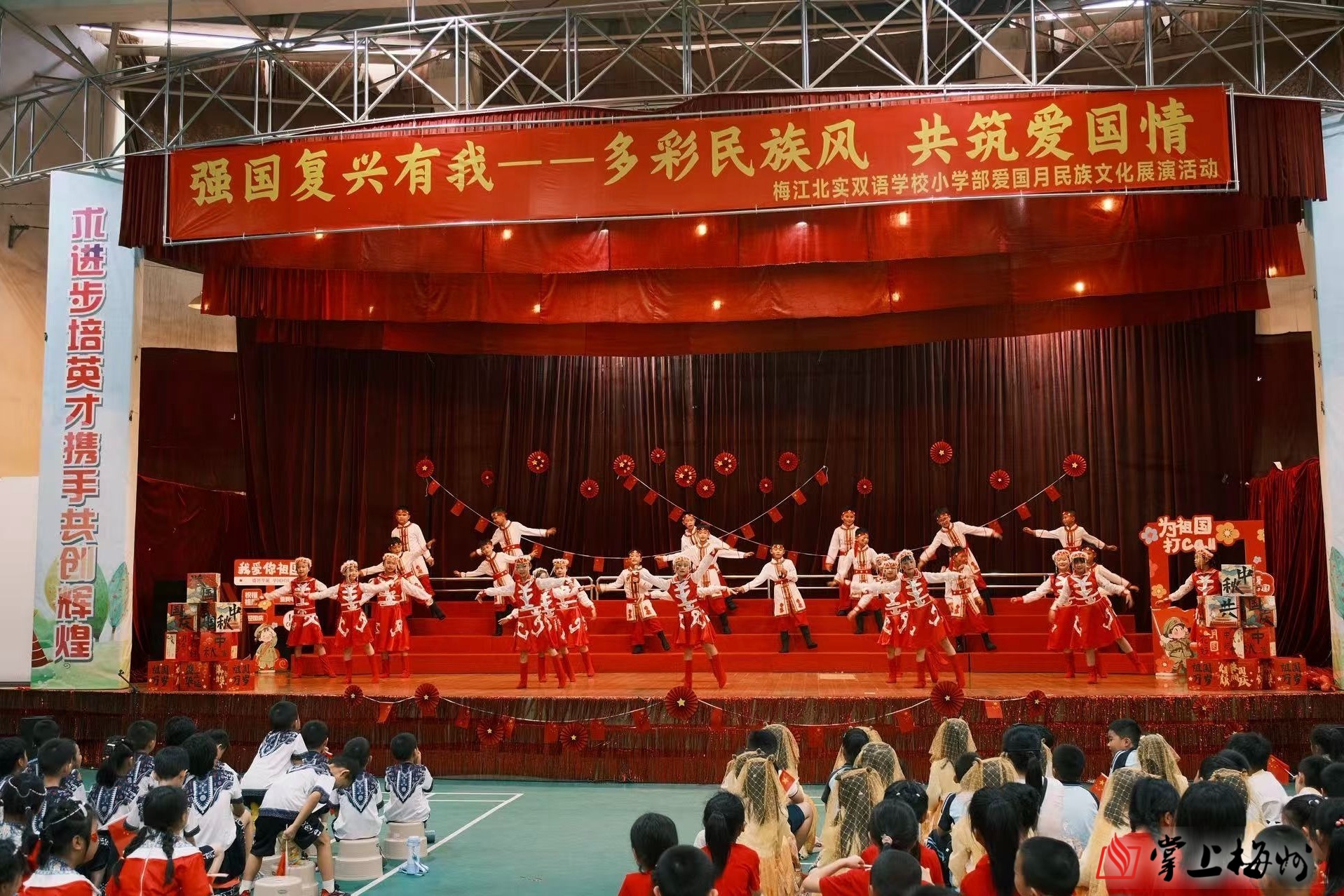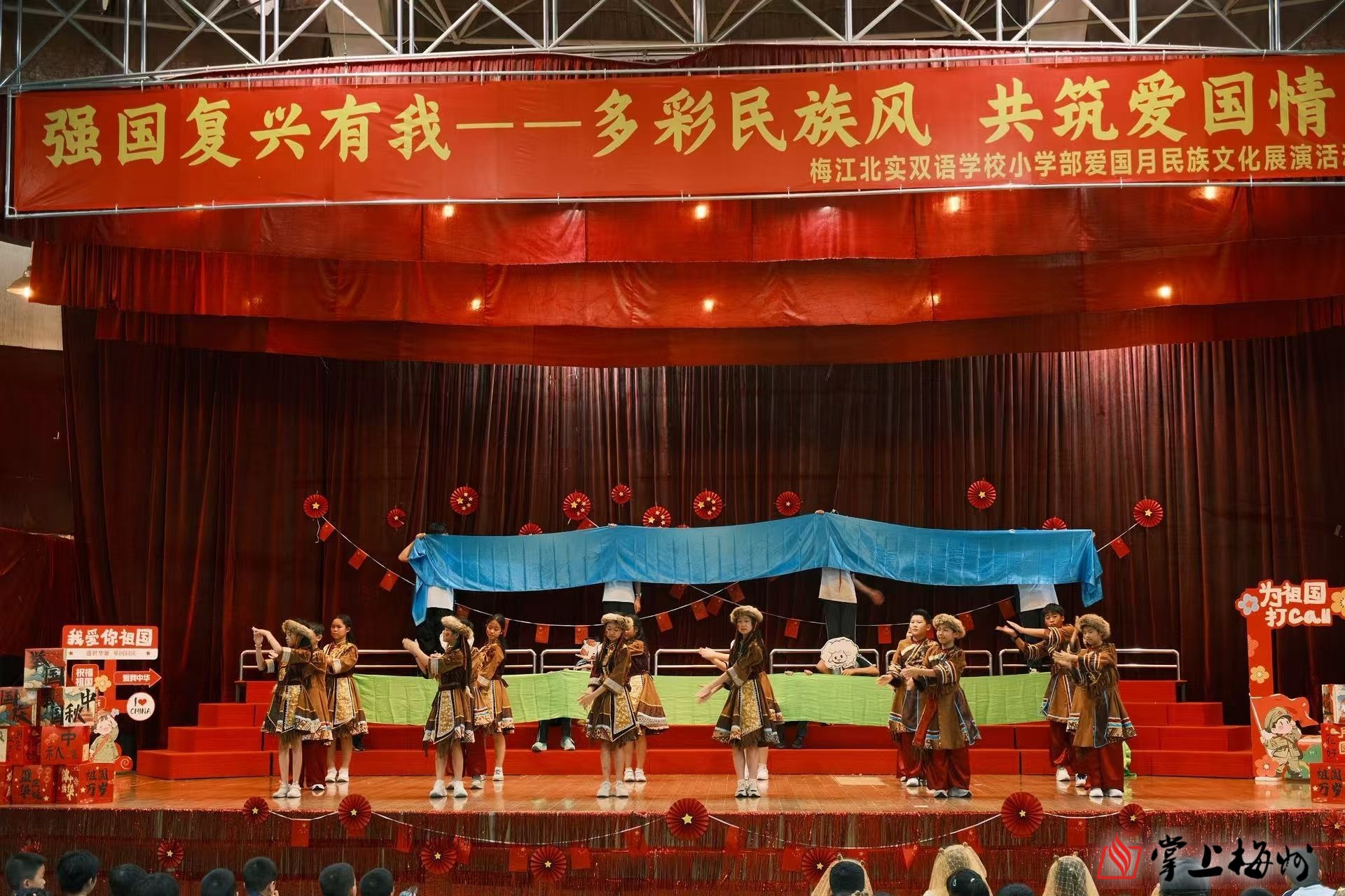 掌上梅州讯 为深化民族团结进步教育,铸牢中华民族共同体意识,9月30日上午,梅江区北实双语学校举行“多彩民族风 共筑爱国情”爱国月民族文化展演活动。师生们齐聚一堂,共同呈现了一场精彩纷呈、意蕴深厚的民族文化盛宴。