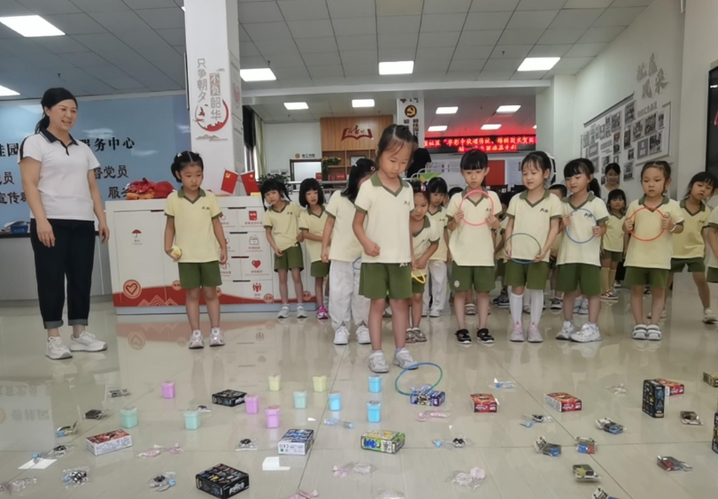 9月28日,碧桂园社区联合梅州客家村镇银行、梅江碧桂园物业服务中心、萍聚幼儿园共同举办“华彩中秋颂传统,锦绣国庆贺团圆”主题活动。活动现场设有套圈圈、猜灯谜、投壶等传统游戏,吸引众多居民踊跃参与。室内环节中,孩子们彩绘国旗、齐唱国歌,在欢乐中接受爱国主义教育,增强民族认同与文化自信。
