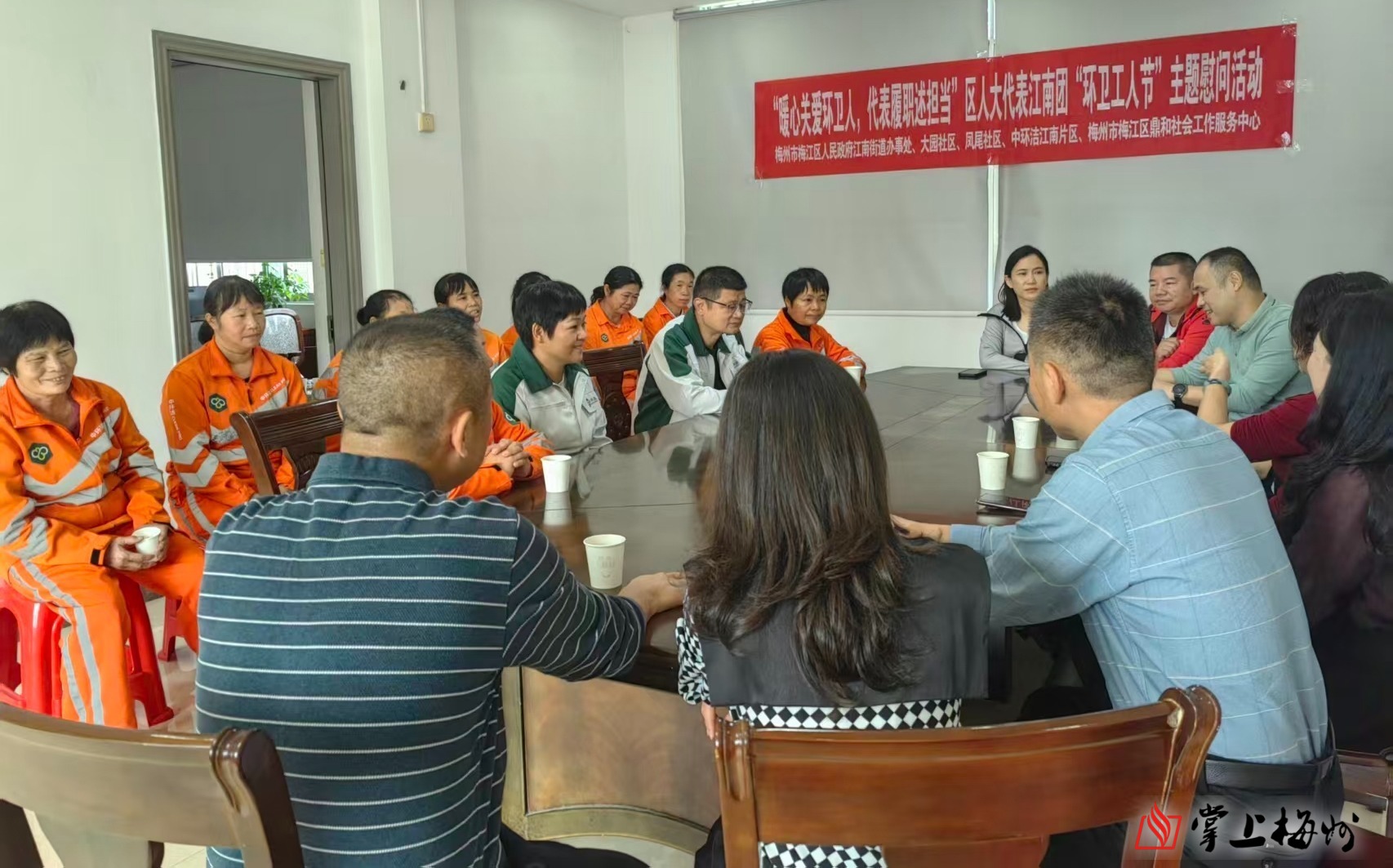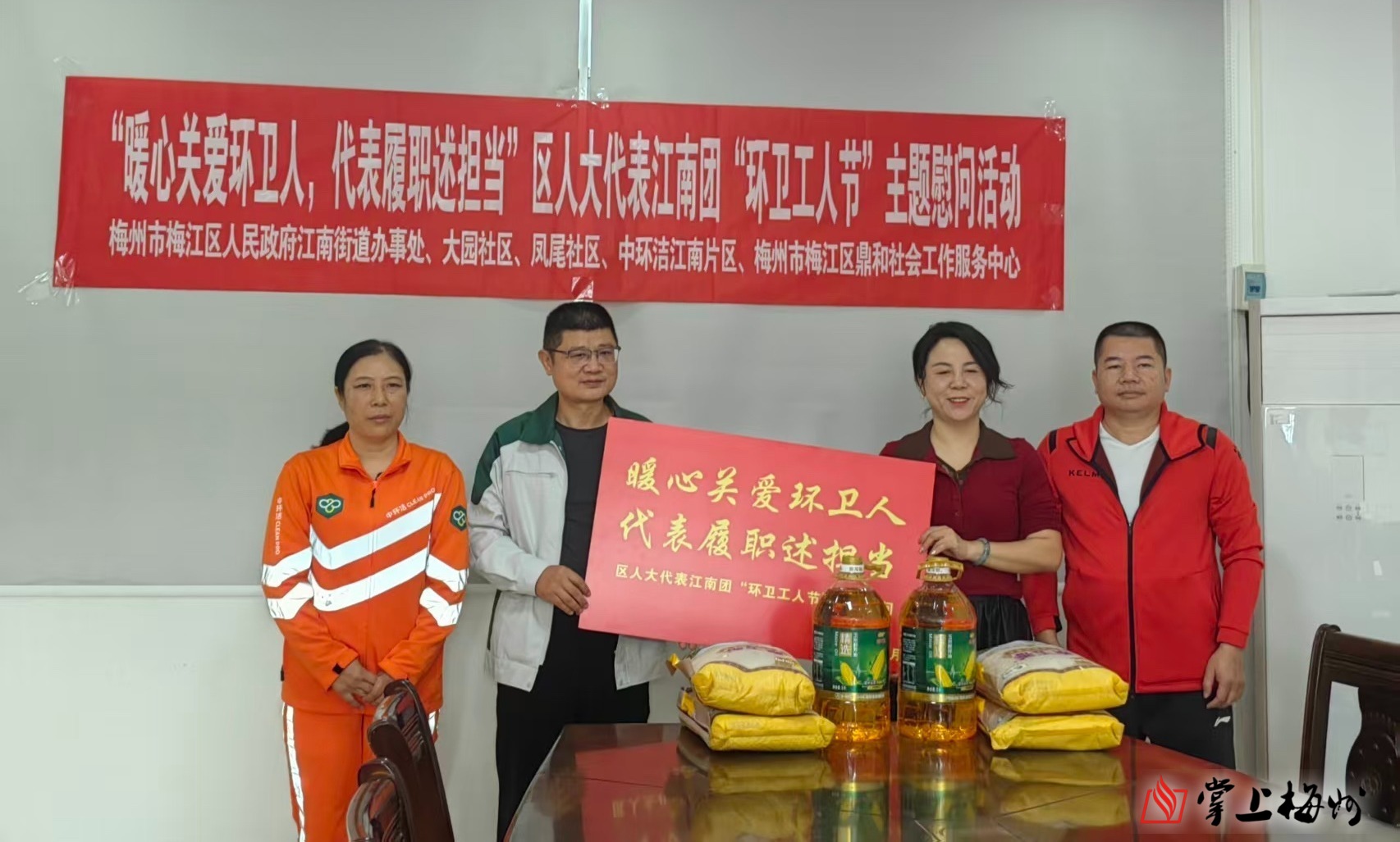 掌上梅州讯 10月26日是广东省第32个环卫工人节。10月24日,梅江区江南街道组织区人大代表江南团开展“暖心关爱环卫人,代表履职述担当”主题活动,走访慰问在江南片区的一线环卫工人。大园社区、凤尾社区及鼎和社工参与了此次活动。