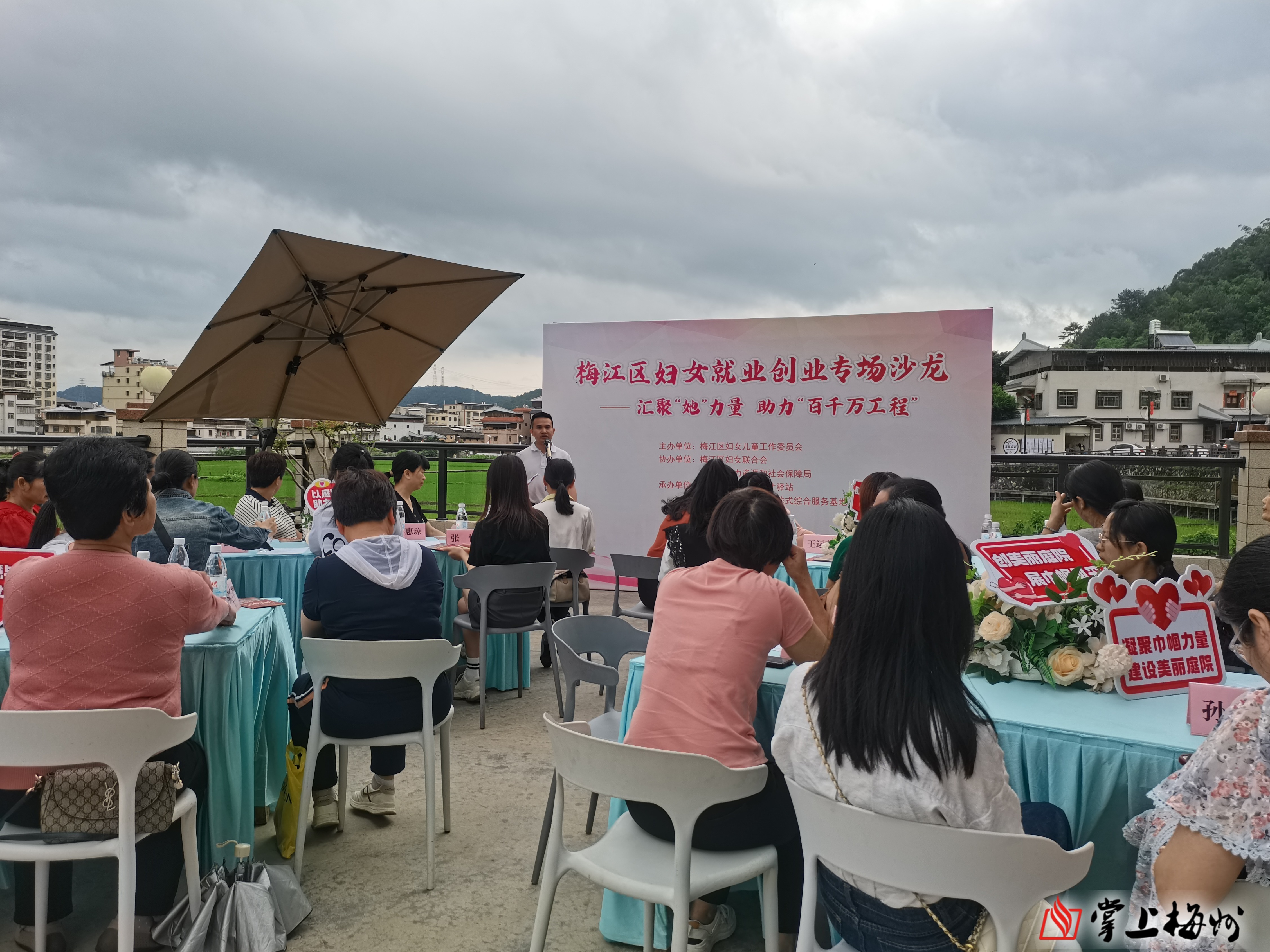 梅江区妇女就业创业专场沙龙活动在阁公岭村“美丽庭院”示范户中举行。(受访者供图)