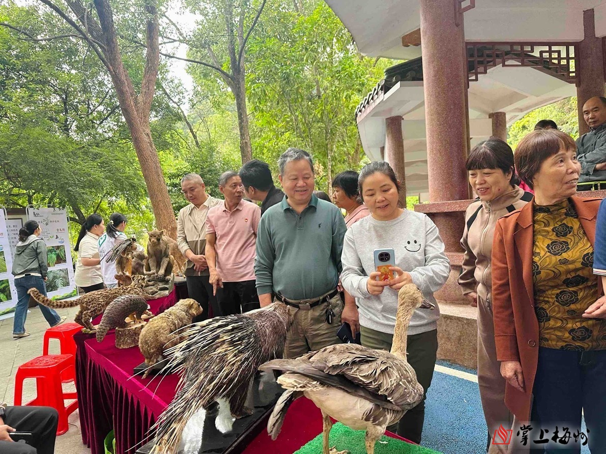 活动现场精心设置主题宣传摊位,工作人员通过发放宣传资料、现场答疑解惑等形式,系统开展林业政策解读及森林防火知识宣讲工作,有效提升了群众对林业工作的知晓度、认同感与参与积极性。现场还特别展出了穿山甲、燕隼、豹猫、小白鹭、黄麂、豪猪等15件野生动物标本,展现了梅江区在生物多样性保护方面的扎实成果,进一步增强了群众的生态保护意识。