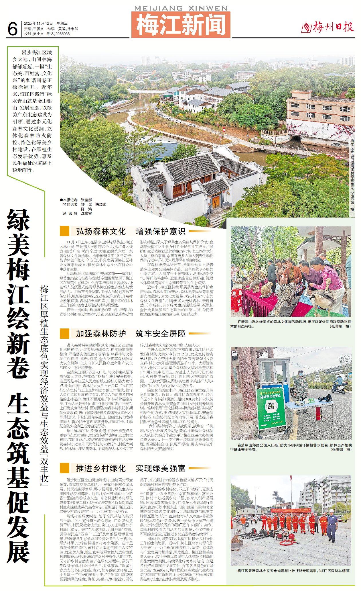 漫步梅江区城乡大地,山间林海郁郁葱葱,一幅“生态美、百姓富、文化兴”的和谐画卷正徐徐铺开。近年来,梅江区践行“绿水青山就是金山银山”发展理念,以绿美广东生态建设为引领,通过多元化森林文化浸润、立体化森林防火防控、特色化绿美乡村建设,在厚植生态发展优势、惠及民生福祉的道路上稳步前行。