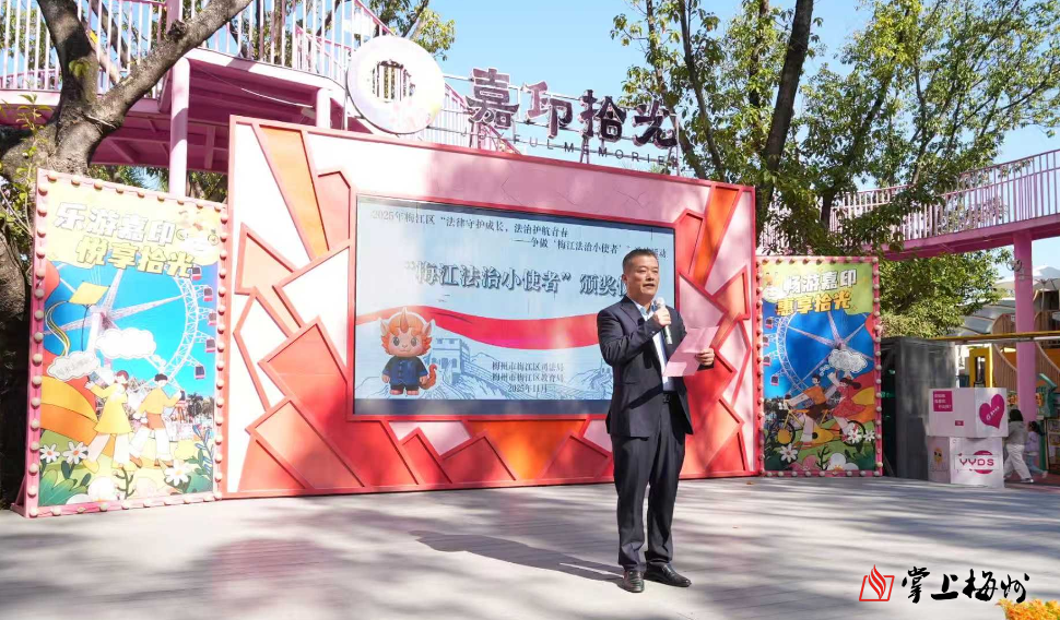 掌上梅州讯 11月15日上午,由梅江区司法局、梅江区教育局、梅江区法律援助处联合主办的“南粤法援三十载 守护公平惠民生”“法治嘉年华·童心伴我行”亲子普法运动游园会,在嘉印拾光公园(原西桥公园)正式拉开帷幕。活动以趣味化、互动化的形式,让法治教育走进家庭,在亲子协作中传递法治理念。