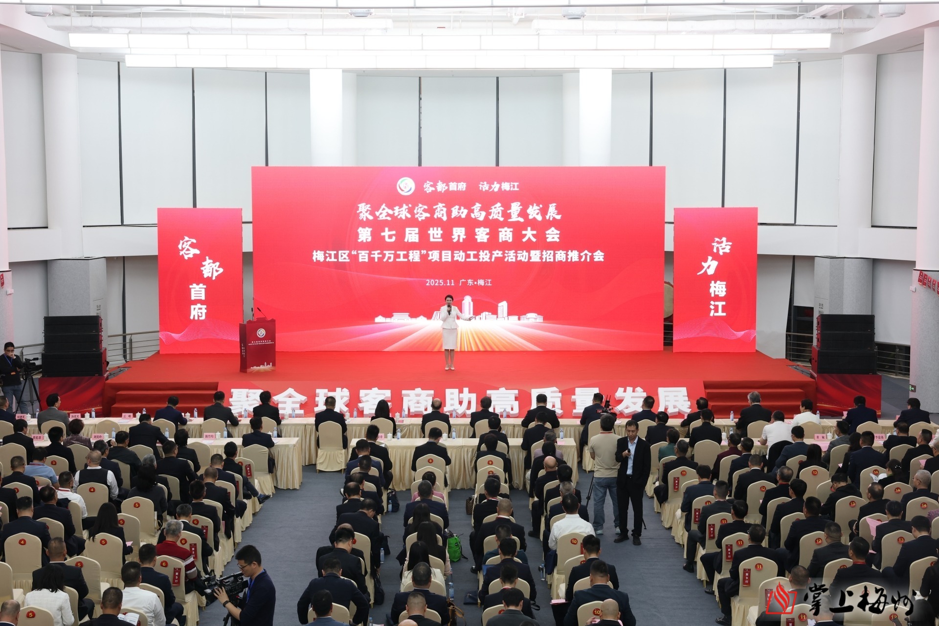 11月24日,第七届世界客商大会梅江区“百千万工程”项目动工投产活动暨招商推介会在博敏电子芯光文体中心举行。300多名海内外客商嘉宾、政企代表齐聚一堂,共话合作机遇,共绘发展蓝图。