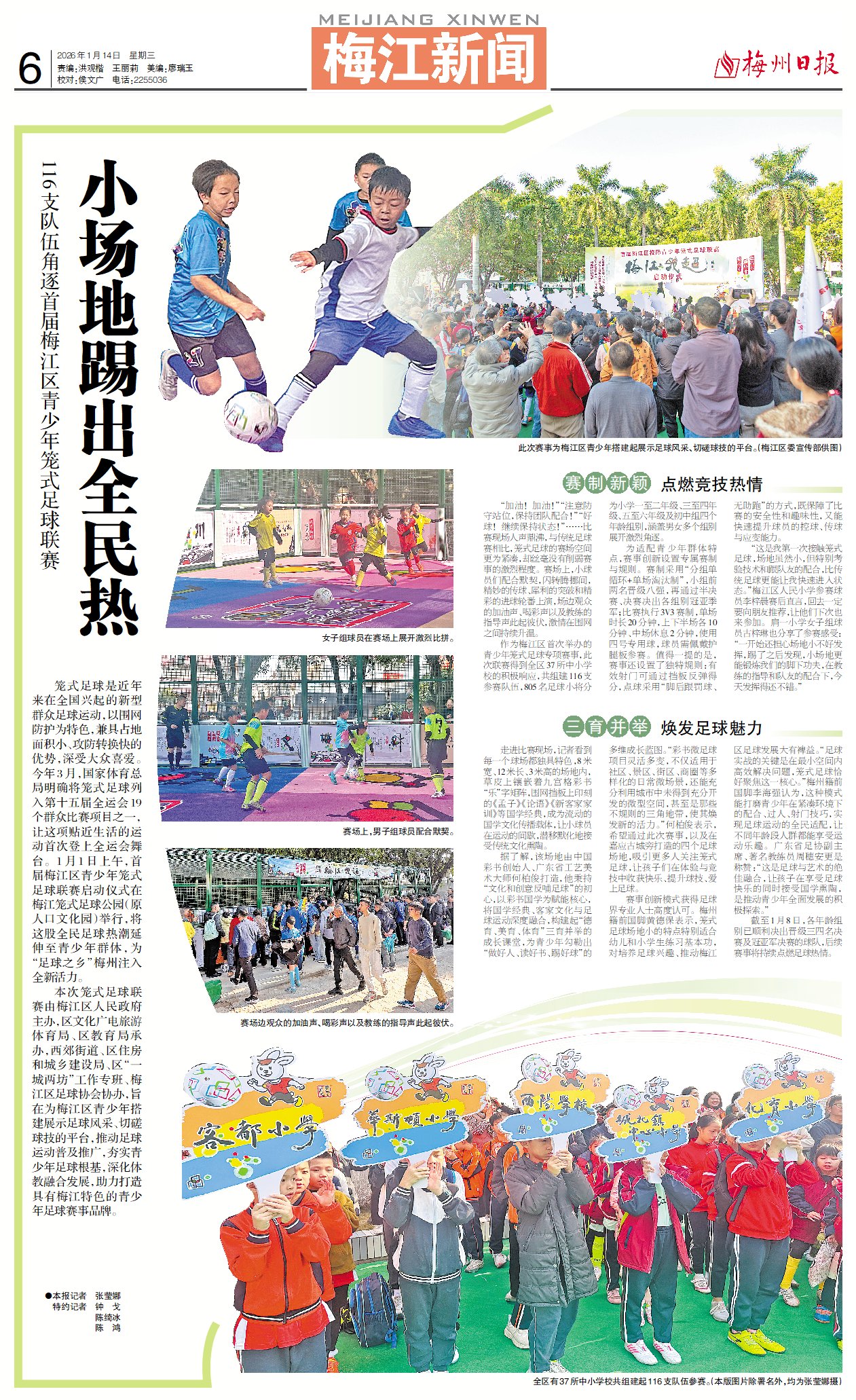 笼式足球是近年来在全国兴起的新型群众足球运动,以围网防护为特色,兼具占地面积小、攻防转换快的优势,深受大众喜爱。今年3月,国家体育总局明确将笼式足球列入第十五届全运会19个群众比赛项目之一,让这项贴近生活的运动首次登上全运会舞台。1月1日上午,首届梅江区青少年笼式足球联赛启动仪式在梅江笼式足球公园(原人口文化园)举行,将这股全民足球热潮延伸至青少年群体,为“足球之乡”梅州注入全新活力。