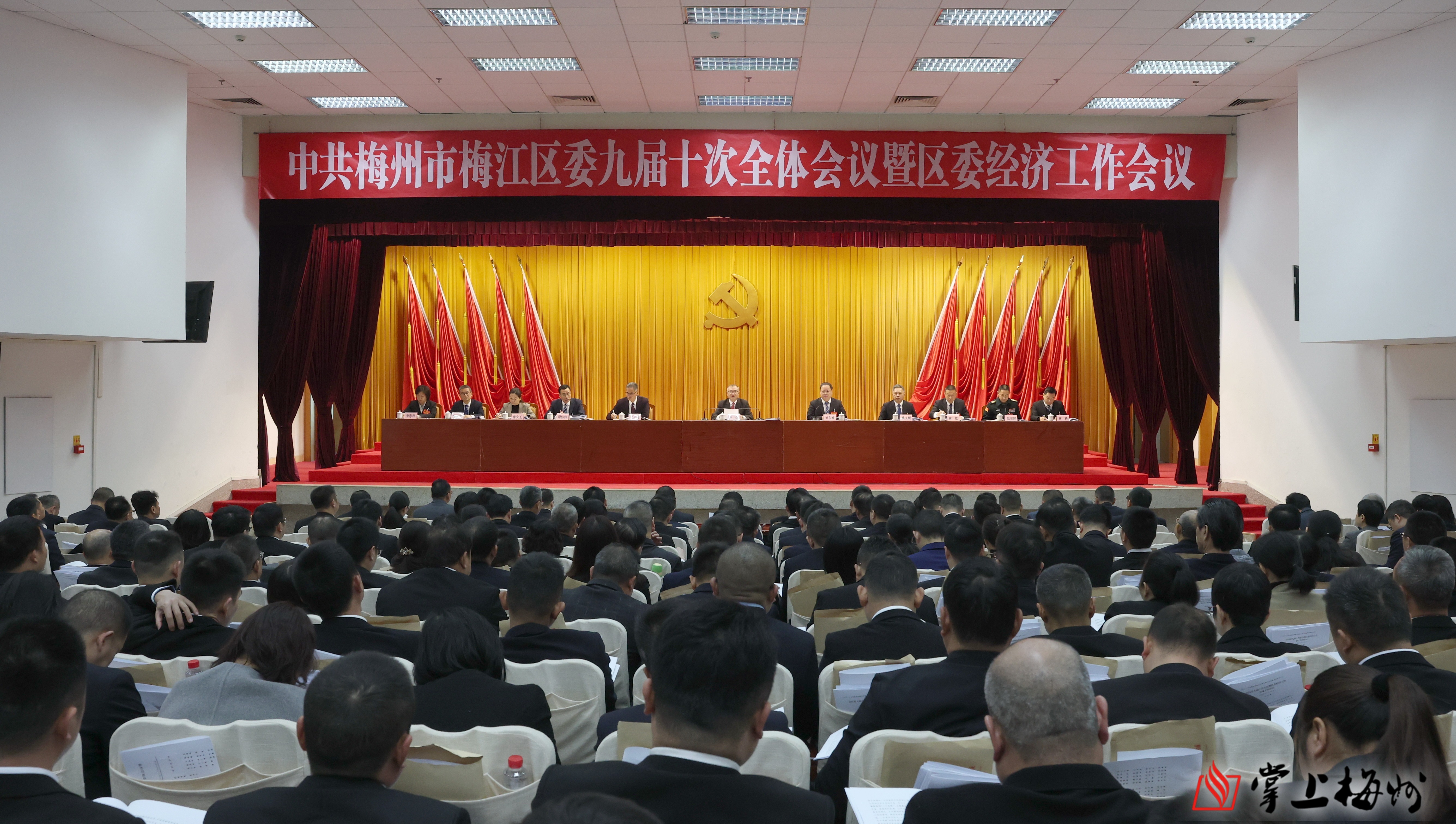掌上梅州讯 1月16日,中国共产党梅州市梅江区第九届委员会第十次全体会议暨区委经济工作会议在梅江区委区政府礼堂召开。会议坚持以习近平新时代中国特色社会主义思想为指导,全面贯彻党的二十大和二十届历次全会以及中央经济工作会议精神,深入贯彻习近平总书记对广东系列重要讲话和重要指示精神,认真落实省委十三届七次、八次全会和市委八届十一次、十二次全会部署要求,总结2025年工作,谋划“十五五”时期梅江区经济社会发展,部署2026年工作,动员全区上下牢记嘱托、接续奋斗,推动梅江发展再加快速度,奋力谱写梅江现代化建设新篇章。区委常委会主持会议。区委书记丘炀代表区委常委会作报告,并就有关文件稿向全会作说明。区委副书记、区长刘东峰就经济工作作专题讲话。