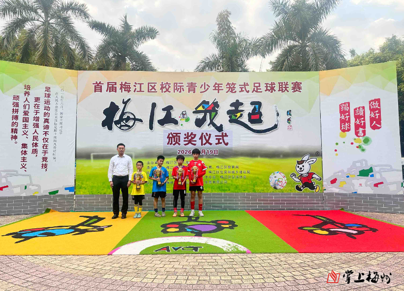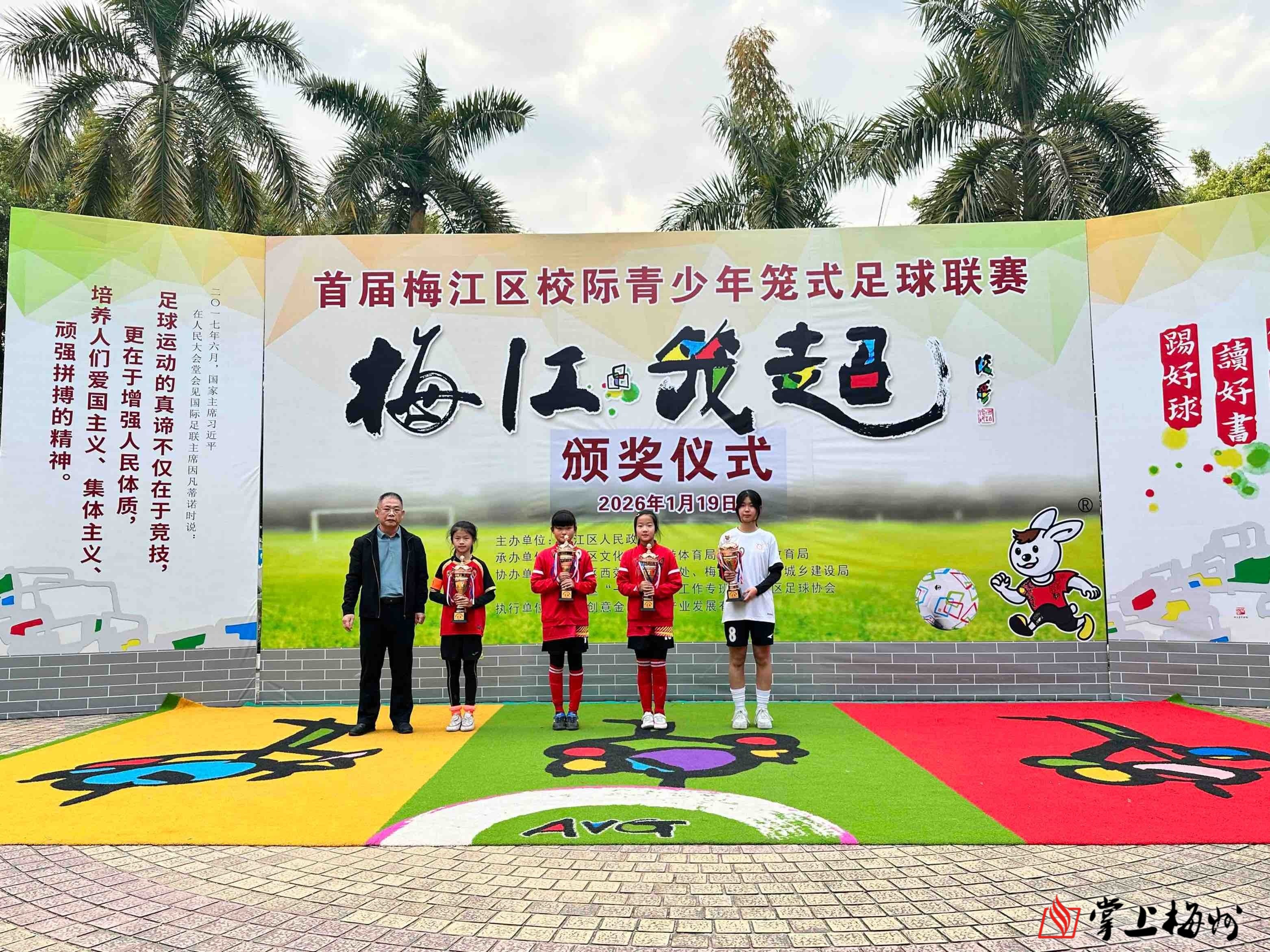 掌上梅州讯 1月19日下午,首届梅江区青少年笼式足球联赛颁奖仪式在剑英大桥江北引桥侧梅江笼式足球公园(原人口文化园)举办。