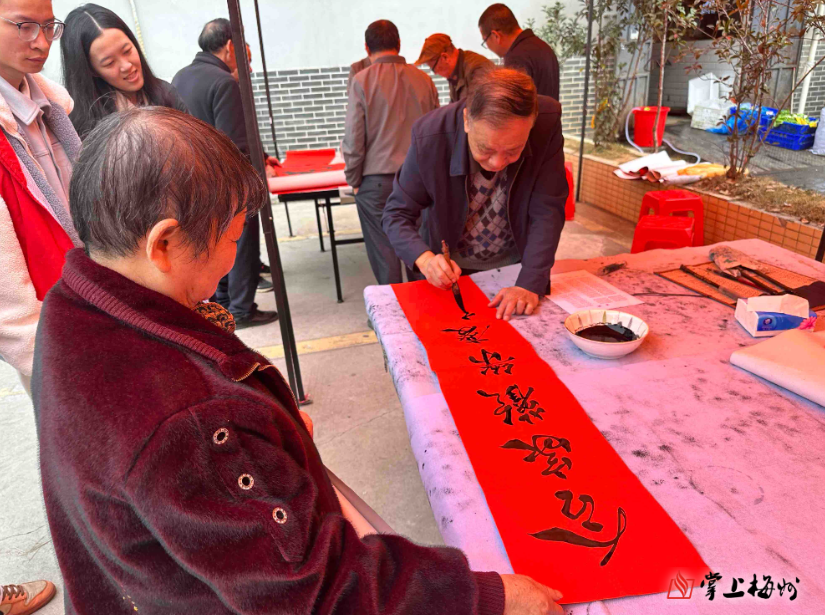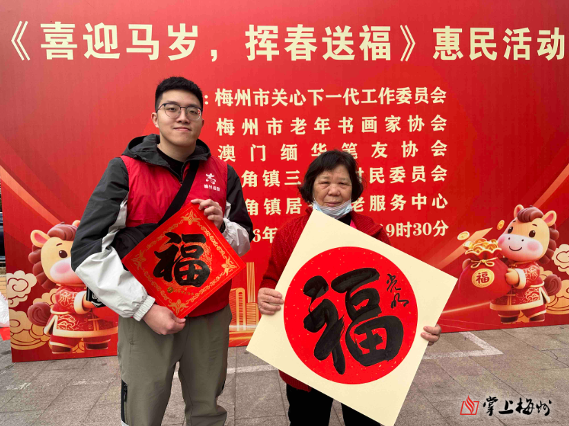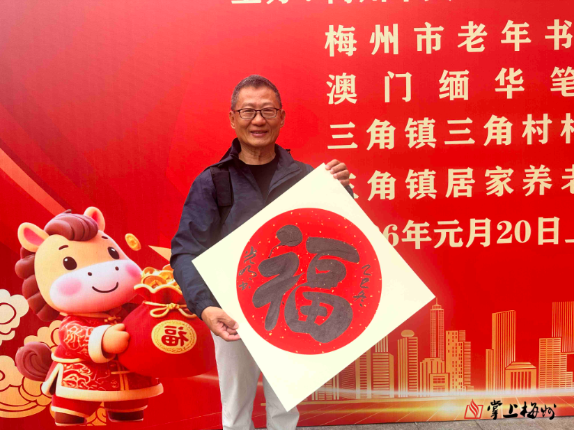 掌上梅州讯 1月20日,由市关心下一代工作委员会、市老年书画家协会、澳门缅华笔友协会、三角镇三角村村民委员会联合开展的“喜迎马岁 挥春送福”惠民活动,在三角镇居家养老服务中心举行。市关工委主任何正拔,常务副主任陈林荣,市政协原副主席张光明,澳门嘉应同乡会创会会长黄铨昌等参加活动。