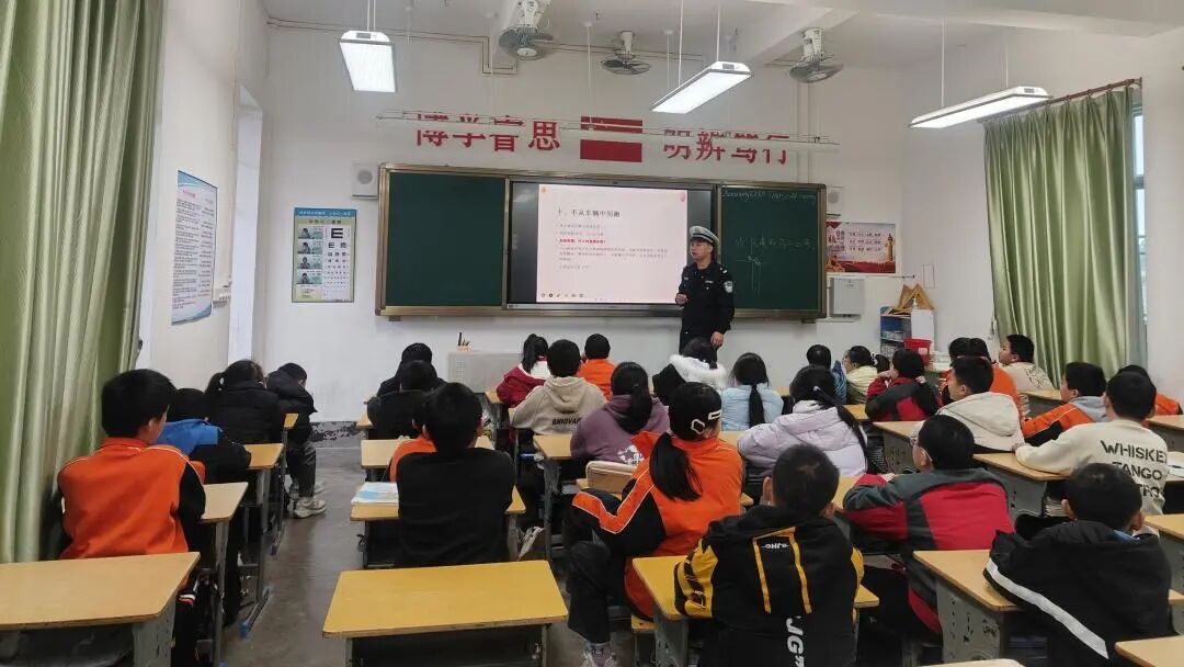 临近寒假尾声,梅江分局组织法治副校长走进辖区中小学,为同学们带来“干货满满”的寒假安全课堂。课堂上,民警重点讲解了寒假出行交通安全注意事项,细致叮嘱同学们过马路走斑马线、不追逐打闹、不横穿马路,乘车时不将头、手伸出窗外等安全要点;同时专门点名表扬了一批文明出行的学生家长,肯定了家长以身作则的榜样作用,引导同学们自觉遵守交通规则,将文明出行理念记在心里、落在行动上。