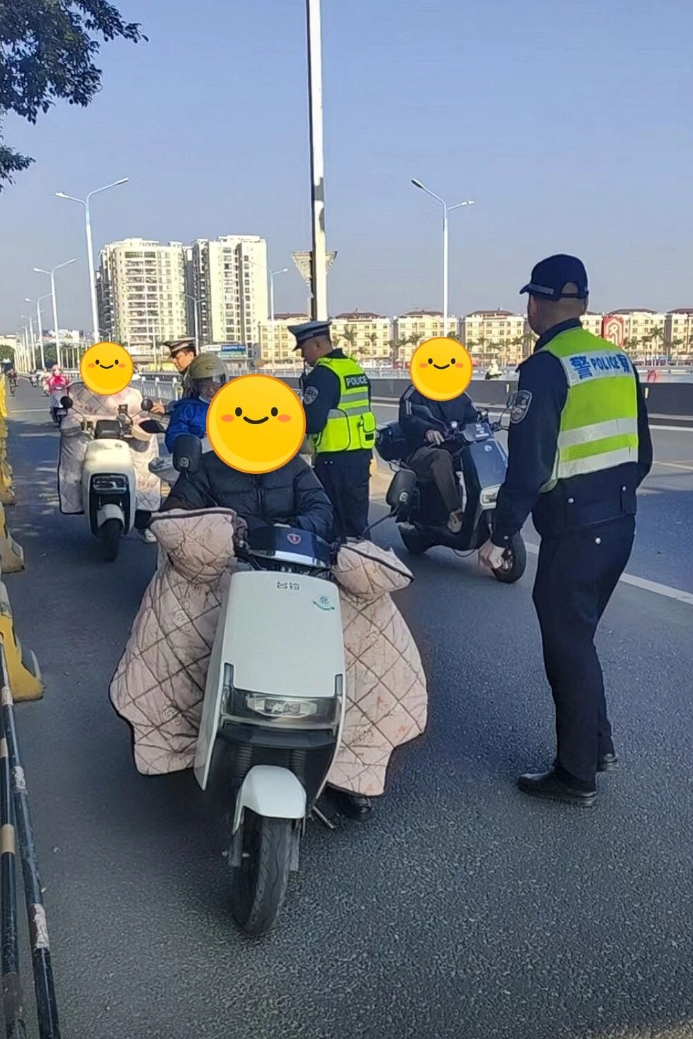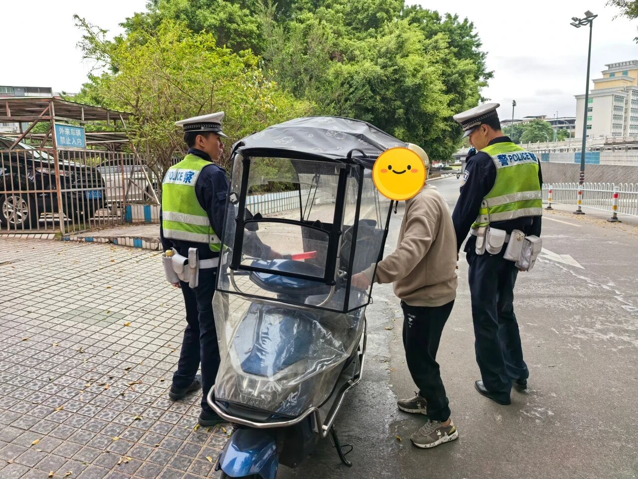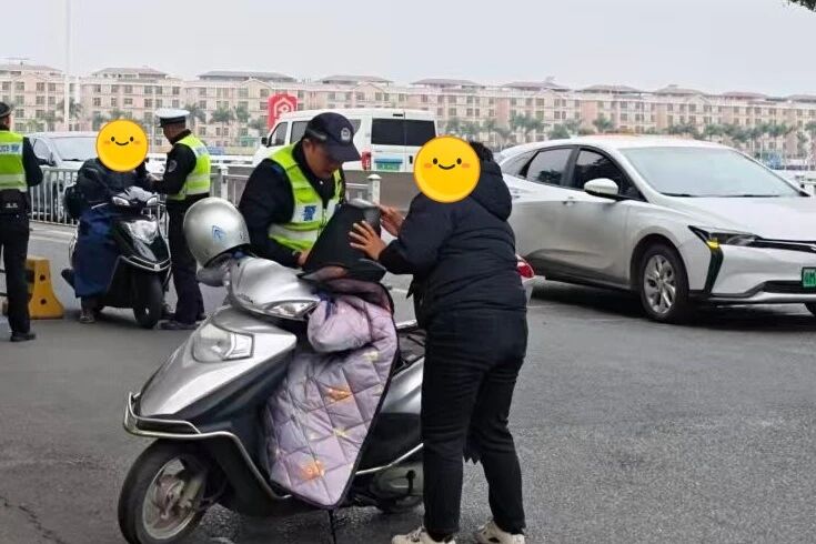 “您好,加装挡风被看似暖和,但在紧急情况下会限制您的手部操作,极易引发交通事故。” 执法现场,民警一边对加装挡风被的车主进行耐心劝导,一边结合真实事故案例,讲解非法加装挡风被、遮阳伞篷等行为的严重危害,引导群众从“被动接受”转向“主动摒弃”,做到守法出行、文明骑行。