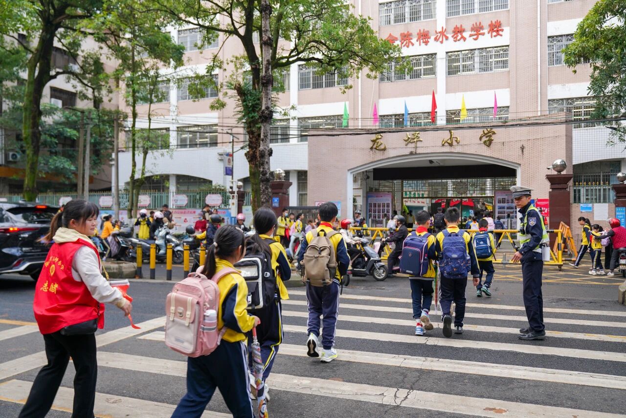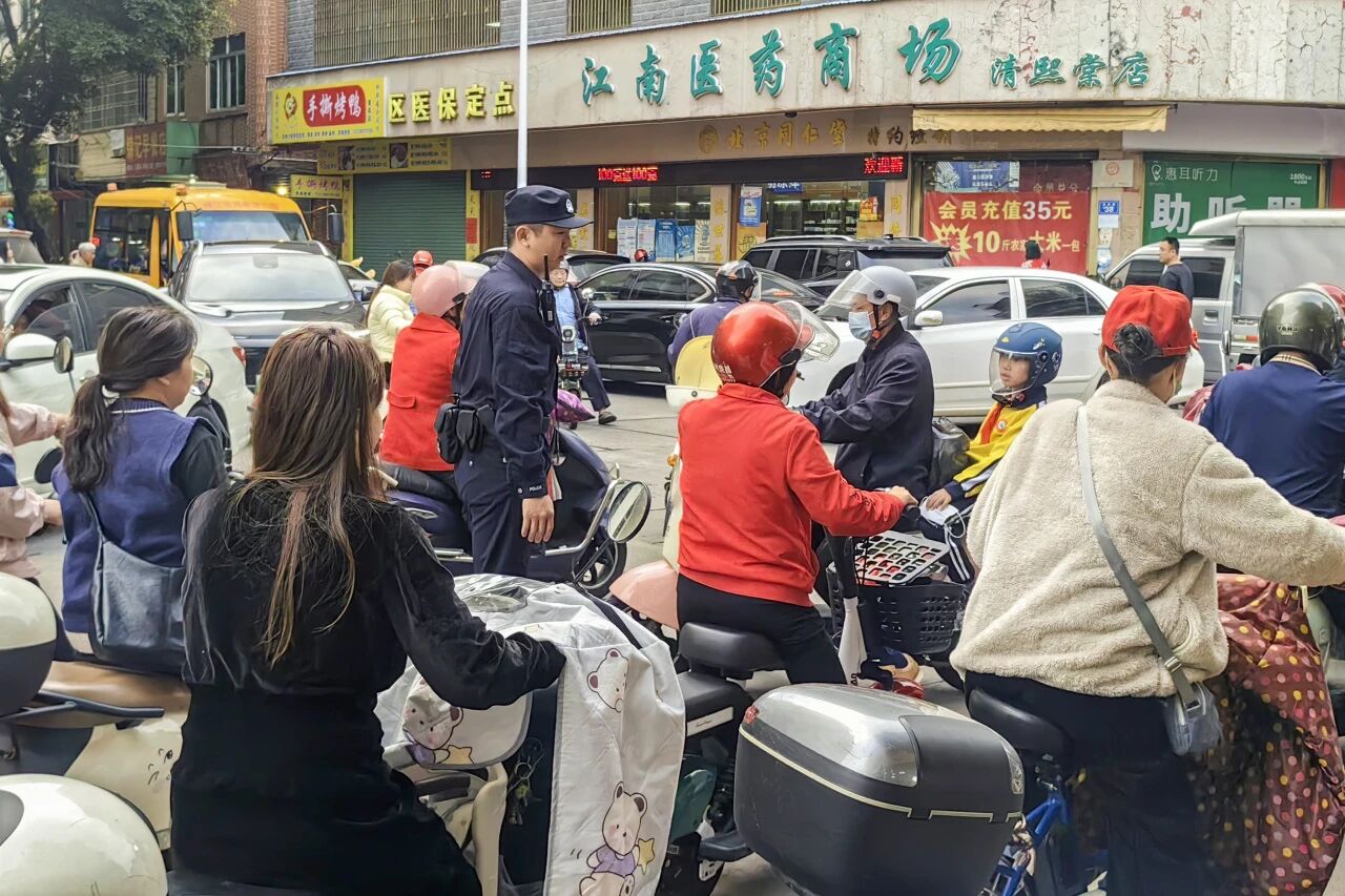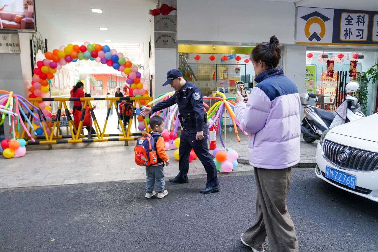 “同学们,慢一点,过马路时要注意来往车辆。” 7时30分,学校门口送学的人流、车流量明显增多,梅江公安民警、辅警提前到岗,在校园门口、人行道及周边重点路段进行交通疏导、秩序维护,引导接送车辆有序停放、即停即走,贴心护送学生安全通过人行道。