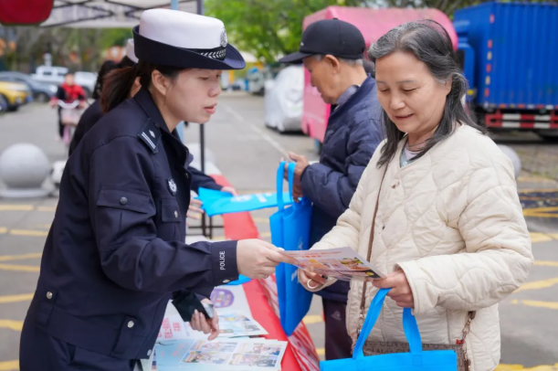同时发放宣传资料,派送警察小熊、安全头盔等礼品,拉近警民距离,营造“人人学安全、守安全”的良好氛围。