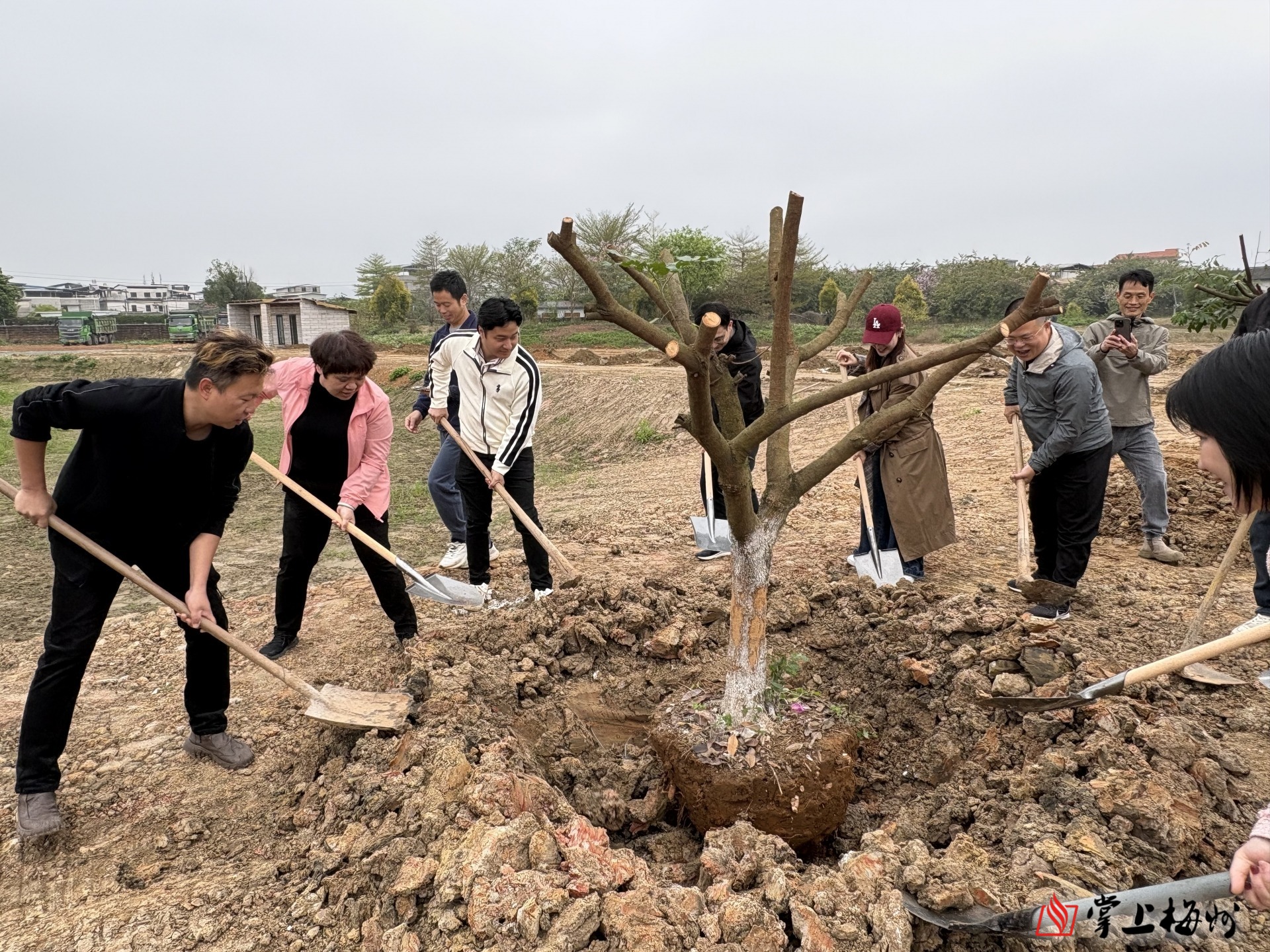 掌上梅州讯 为积极响应梅州市“绿美梅州”生态建设号召,凝聚网络人士力量助力“百千万工程”,3月11日上午,梅州市网络传播协会组织50余名会员代表及网络人士,前往梅江区三角镇未来农场开展“绿美梅州·达人添绿”义务植树活动。市委网信办相关领导、市互联网行业党委下属党支部党员、协会负责人与网络达人携手种下百棵果树,以实际行动为梅州大地增添盎然春意。