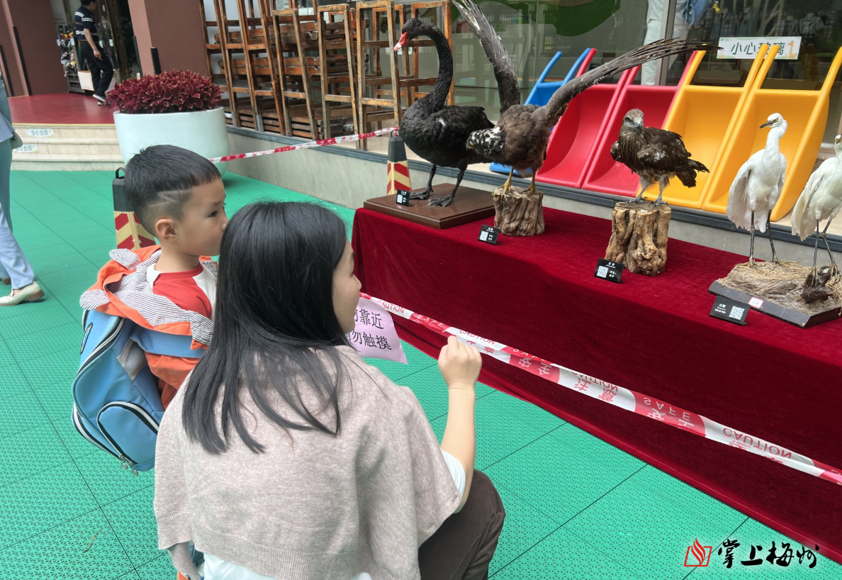 在标本展示区,栩栩如生的鸟类标本让孩子们惊叹不已。他们围在展台前,仔细观察着鸟儿的羽毛、爪子和喙的形状,不时发出“好漂亮啊”“原来鸟的羽毛是这样的”等惊叹声。在老师的引导下,孩子们学会了通过外形特征辨别不同种类的鸟儿。