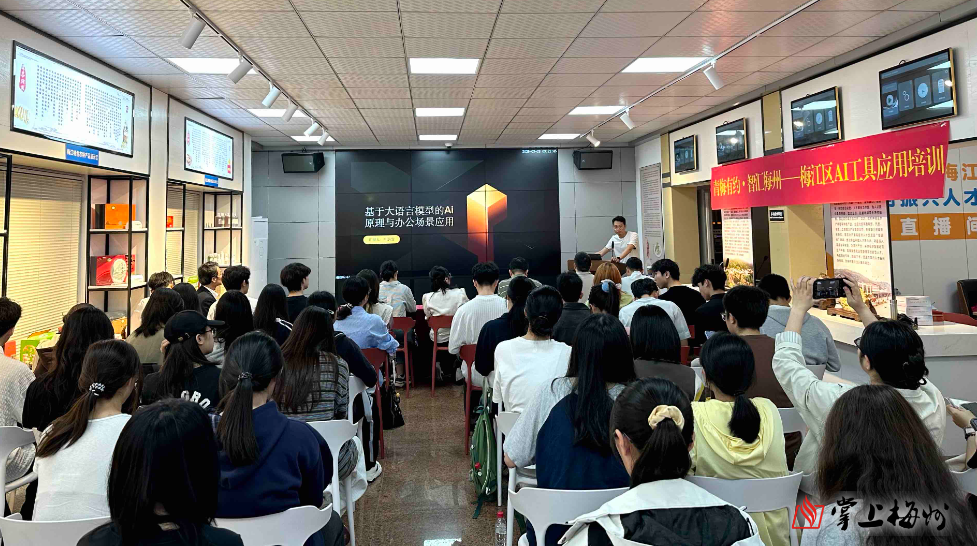 掌上梅州讯 3月28日上午,梅江区“才聚梅江 智创未来”人才周系列活动之“智享AI·筑梦梅江”专题培训活动,在梅江区乡村振兴人才驿站举行。此次活动在梅江区委人才办、梅江区人社局的指导下,由梅江区高层次人才协会主办,梅江区乡村振兴人才驿站协办,来自梅江区的高层次人才代表、企业骨干、嘉应大学学子及相关领域人才共50余人参加。