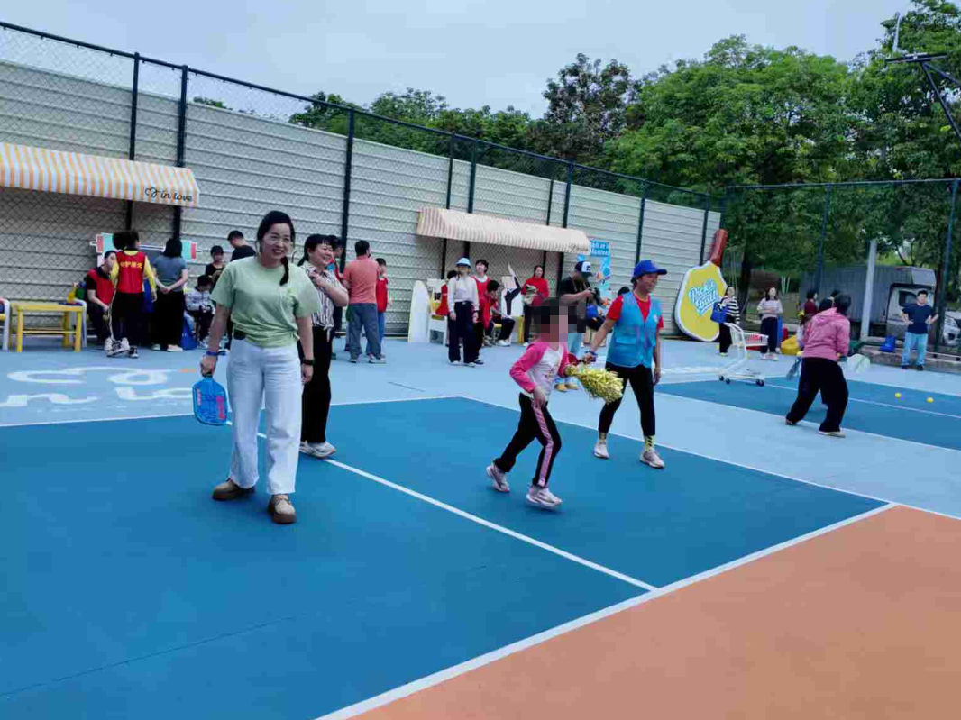 在特教老师和志愿者们的引导下,“星儿”及其家庭共同参与到匹克球活动中。活动现场还设置了摊位,展示“星儿”的作品,并设有以物易物角,现场观众可自行购买,当天收入将注入守护星儿项目“星光运动疗愈基金”。