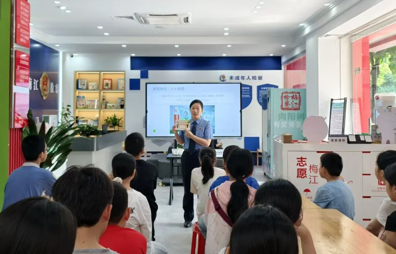 一场别开生面的户外趣味普法活动在梅江区向阳树青少年法治教育基地顺利开展。检察官用通俗易懂的语言,将国家安全知识转化为与青少年日常生活紧密相关的内容:朋友圈随意转发的“紧急通知”可能暗藏诈骗陷阱,未经允许拍摄军事基地照片可能造成国家秘密泄露,甚至从境外带回土壤也可能危及生态安全。孩子们深刻认识到维护国家安全并非遥不可及,而是与每个人息息相关的“身边小事”。