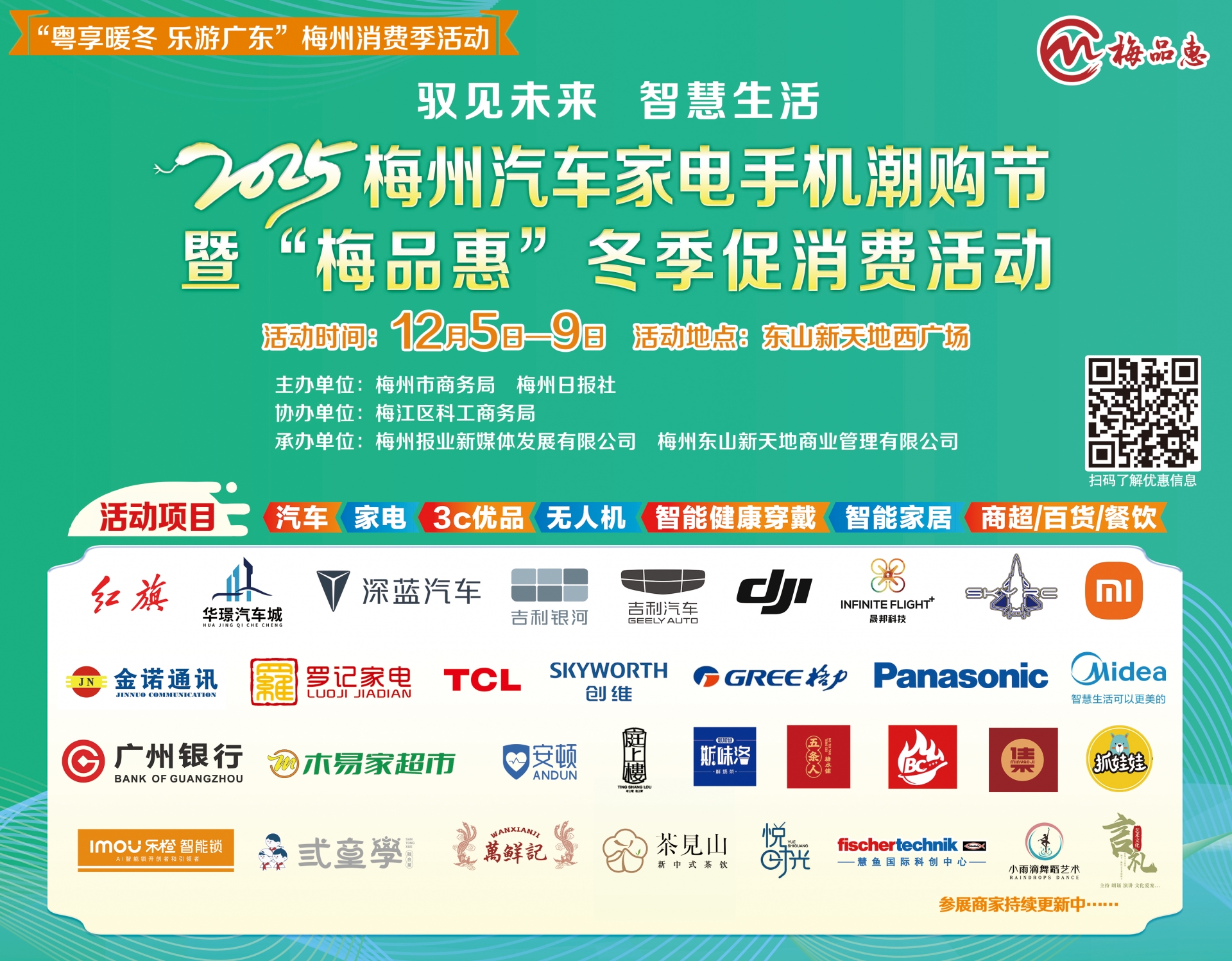 梅州消费王炸局!2025梅州汽车家电手机潮购节暨“梅品惠”冬季促消费活动等你来薅羊毛啦