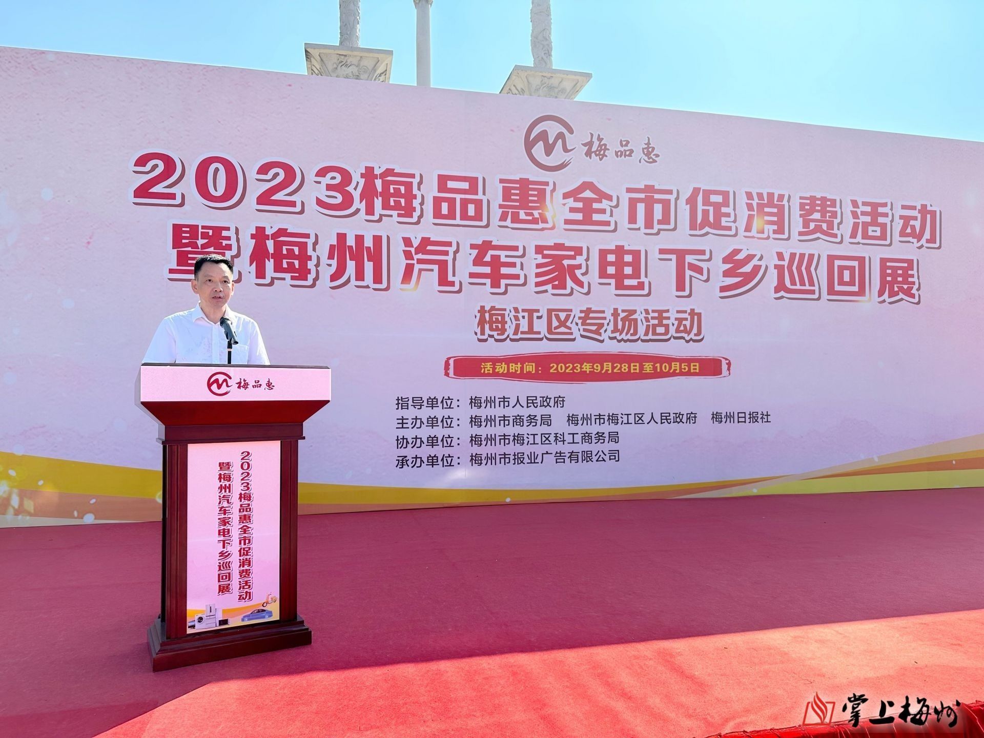 掌上梅州讯 28日上午,2023“梅品惠”全市促消费活动暨梅州汽车家电下乡巡回展(梅江区专场)启动仪式在院士广场举行。