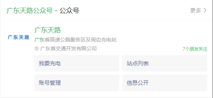 1、使用“微信”软件扫描充电桩上二维码,关注“广东天路”公众号。