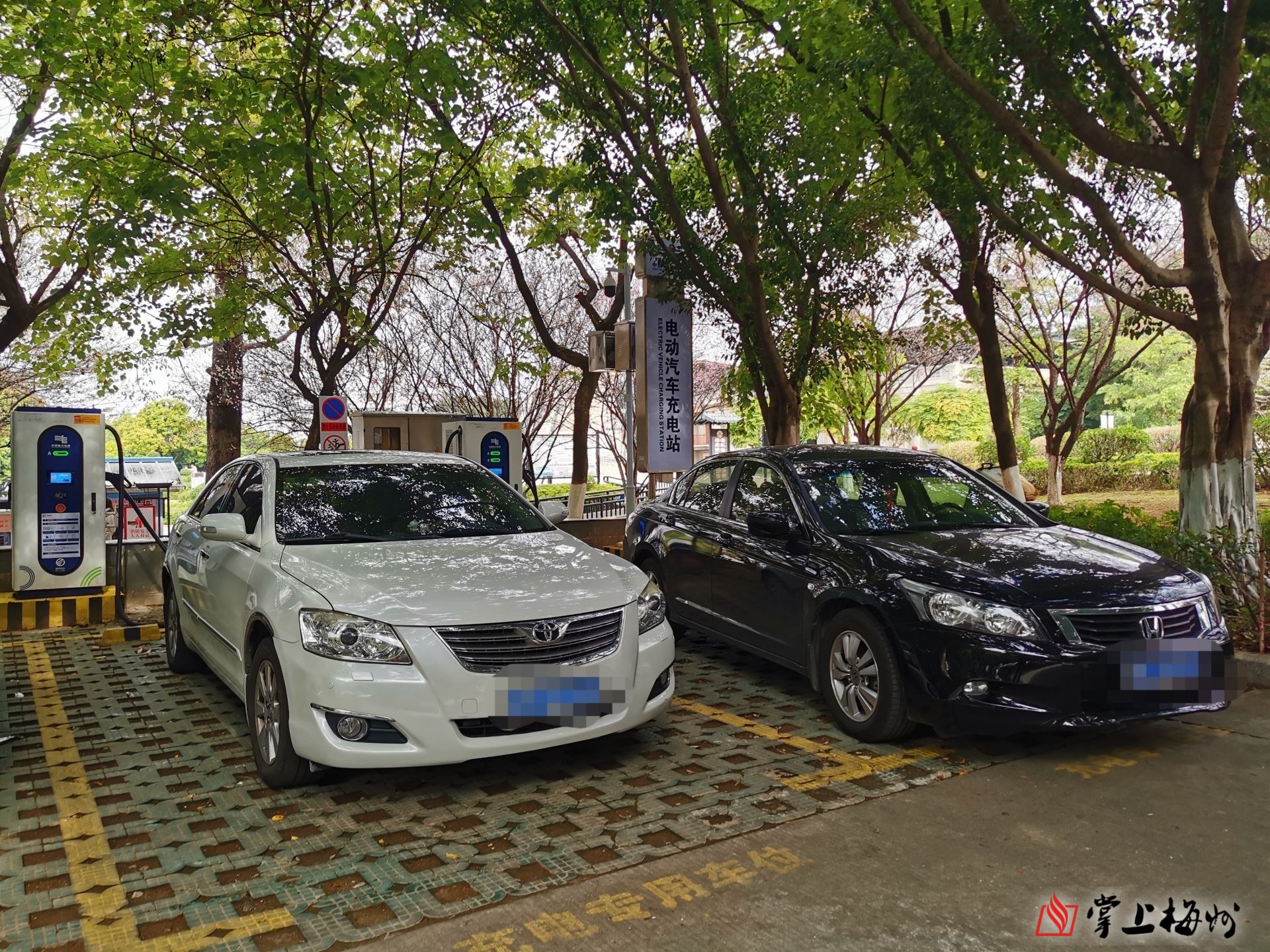 同时,乱停放的现象也出现在景区中。在百岁山郊野公园,一些游客贪图方便,将小汽车随意停放在机动车道两侧,个别车辆被停放在道路转弯处,影响其他车主行车视线。在客家公园停车场,有几辆燃油汽车占用了公共充电桩的配套停车位。