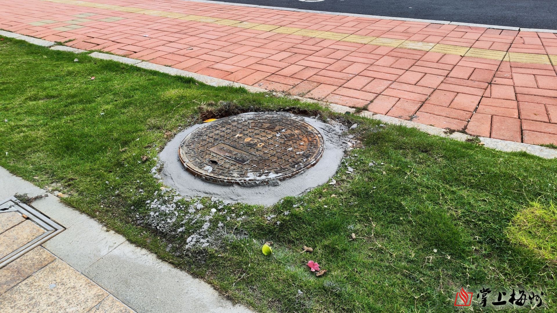 近日,记者再次来到梅县区三葵三路,只见原本放置在窨井周边的警示物也被搬离了,盖面坍塌、露出钢筋的破损井盖已被一块崭新平整的井盖所替代,井盖周边用了水泥加固,踩上去不会有晃动感。