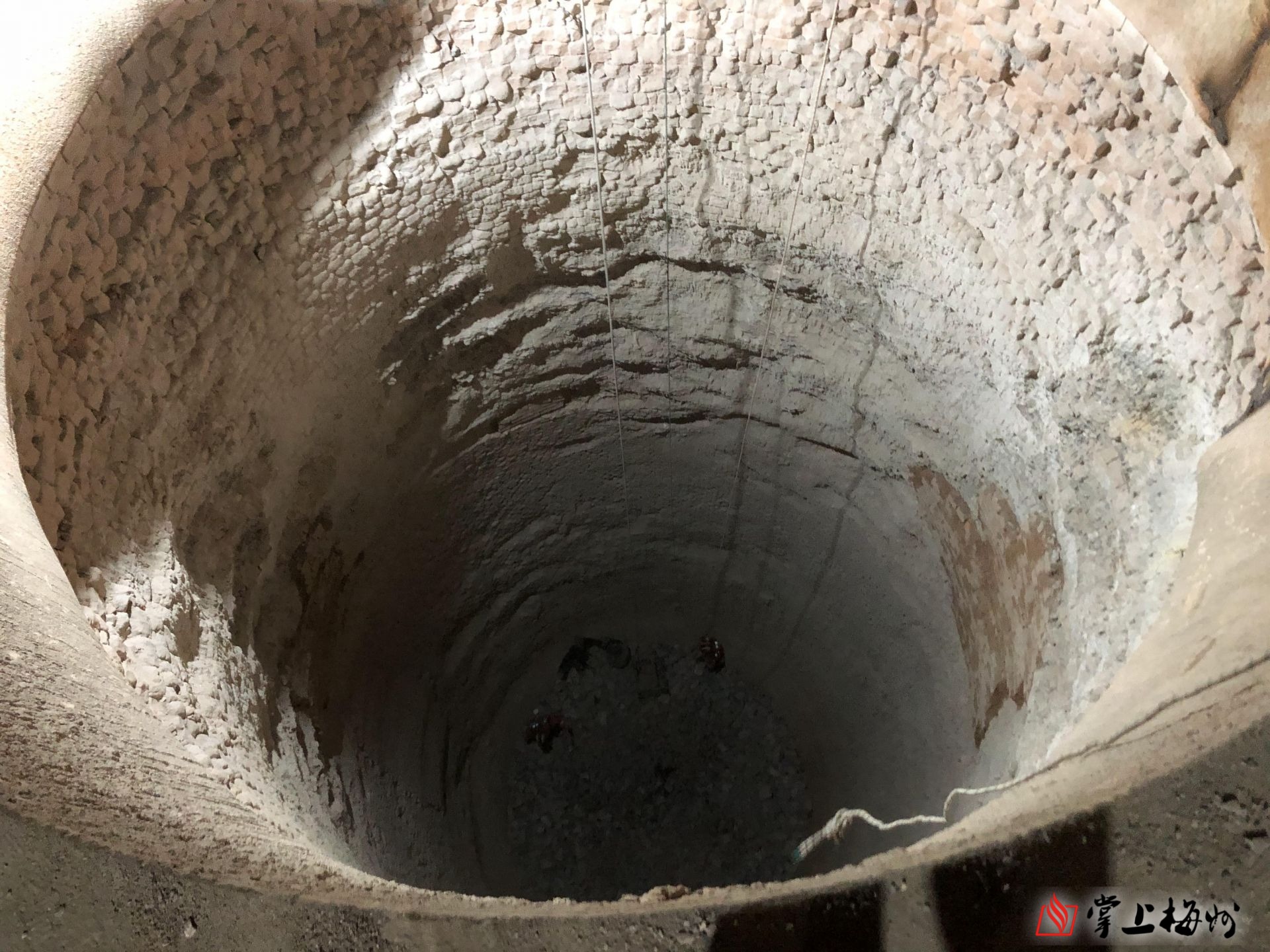 救援人员赶到现场,发现该男子正躺在石灰坑底部,经了解得知,该石灰坑有大约27米深。根据现场情况制定好救援方案后,指挥员立即命令救援组两人穿戴好个人防护装备,并携带多功能救援担架和一名知情人员利用现场吊机逐一下去救援,其余人员利用绳索作三处支点保护下井人员。