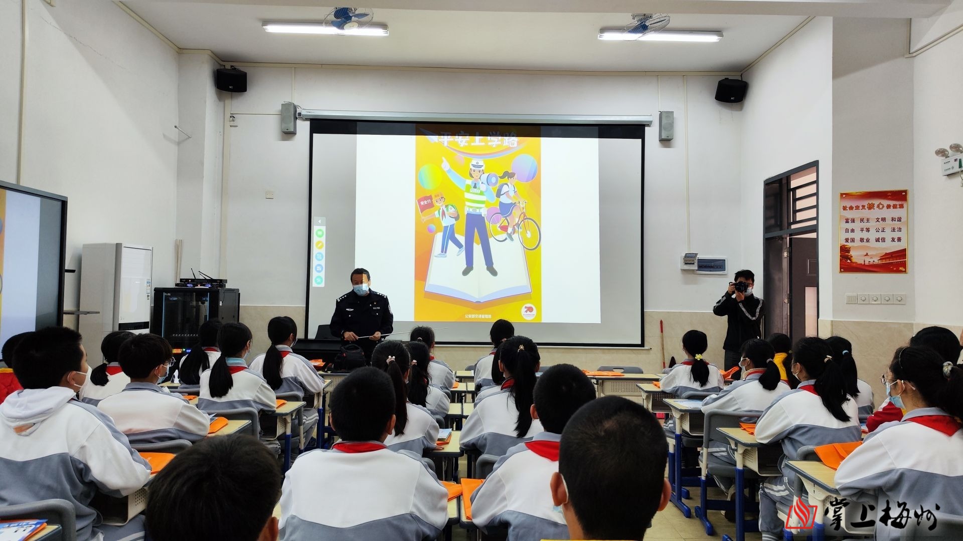 当天,梅州市公安局梅县区分局交警大队民警走进梅县区德兴小学,为小学生们送上“交通安全第一课”。课堂中,大队宣传民警根据学生们步行、乘车等各种日常出行方式,结合事故视频和案例,指出学生日常出行中会碰到的道路交通问题。