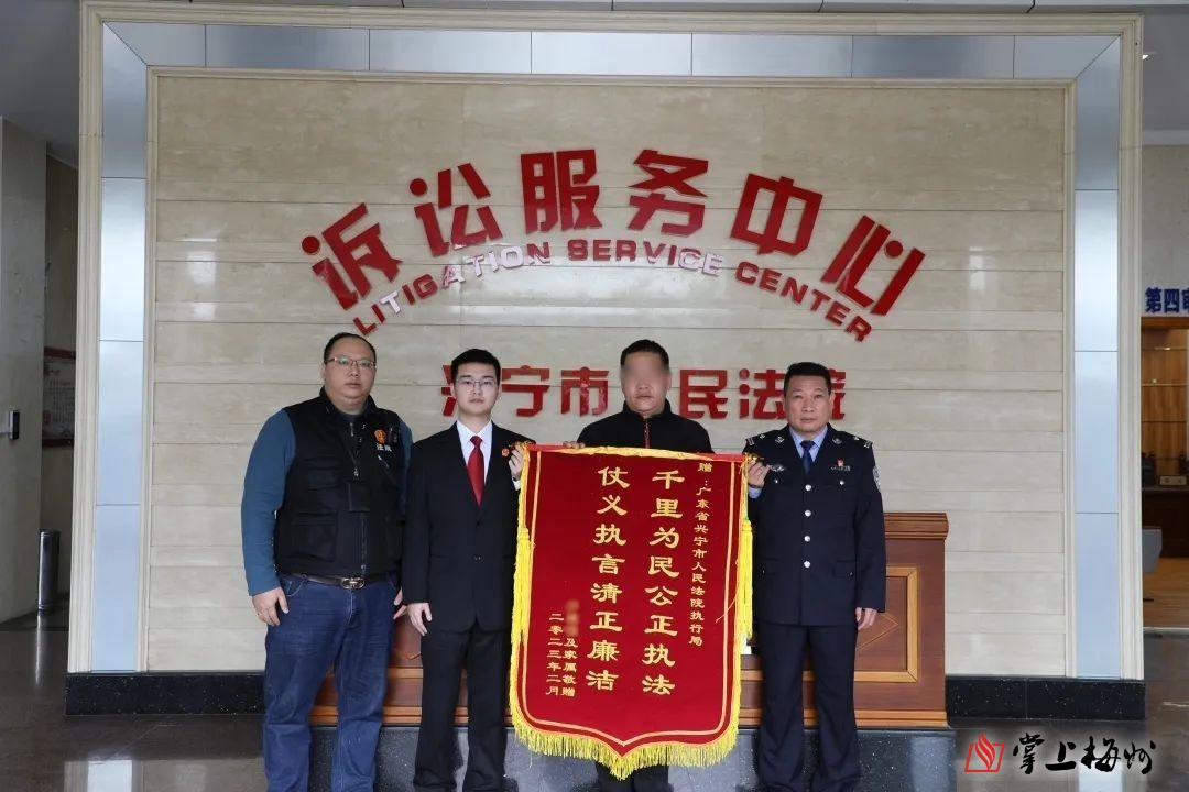掌上梅州讯 “太感谢你们了,真没想到被执行人躲到福建都被你们找到了,刚开春就特地为我的事忙活,真的辛苦了!”2月7日,一宗民间借贷纠纷案件的申请执行人罗某某来到兴宁法院,为执行干警送上一面印着“千里为民公正执法 仗义执言清正廉洁”的锦旗。
