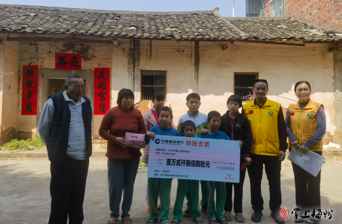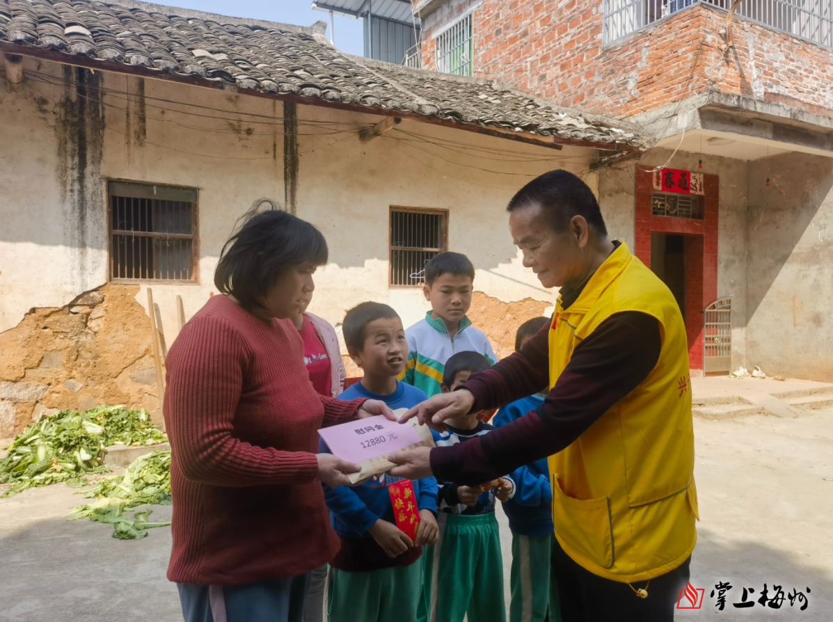 兴宁市善小助学协会会长刘选仁将社会各界捐赠的爱心款转交到陈春苑手中,鼓励她不要对生活失去信心,尽快恢复好身体,带领家庭走出困境,并勉励孩子们努力读书,改变生活和命运。