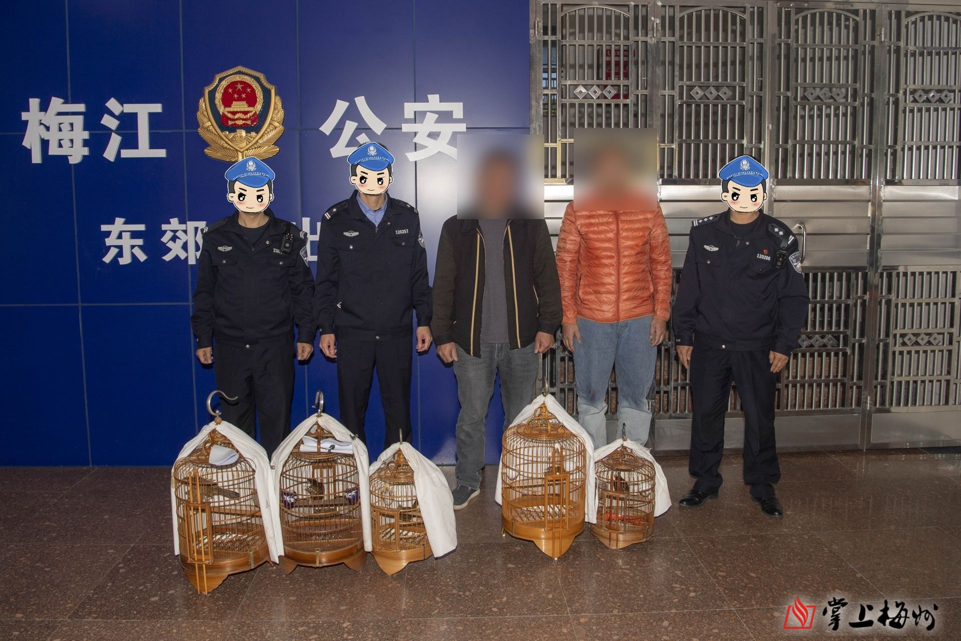执勤过程中,一辆灰色摩托车缓缓驶向卡点,执勤民警在对该车辆及车主进行例行检查时发现车上放有两个鸟笼,鸟笼内查获两只活体画眉鸟。随后,这辆由卢某兴(男,25岁,梅江区人)驾驶的摩托车被依法扣押,车主卢某兴被依法传唤至公安机关接受调查。通过进一步深挖扩线,办案民警于当日11时许在梅江区城北镇抓获另一名犯罪嫌疑人曾某忠(男,53岁,梅江区人),查获3只活体画眉鸟。经审讯,两名犯罪嫌疑人均如实供述了非法收购、出售画眉鸟的犯罪事实。