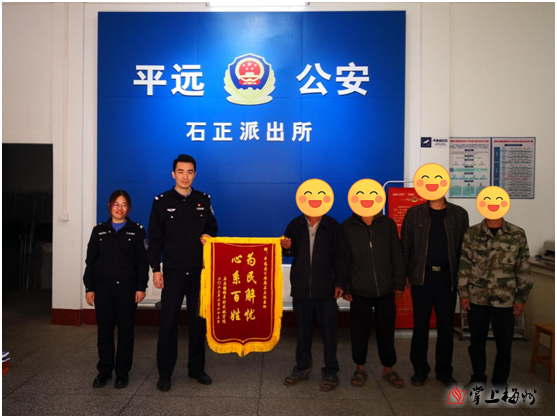 3月6日上午,石正镇绵羊村村民姚大爷及其家属来到石正派出所,将一面印有“为民解忧 心系百姓”的锦旗送到民警手中,表达对民警热心帮助群众,全心全意为民办实事的谢意。