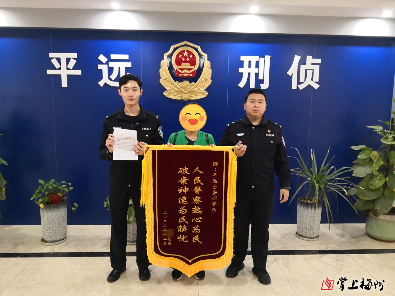 掌上梅州讯 这俗话说得好,金杯银杯不如老百姓的口碑!一声感谢,代表着人民群众对公安机关的信任;一面锦旗,承载着人民群众对民警工作的认可。近期,平远公安接连收到群众送来的锦旗亦或是感谢信,这背后都有怎么样的故事呢?