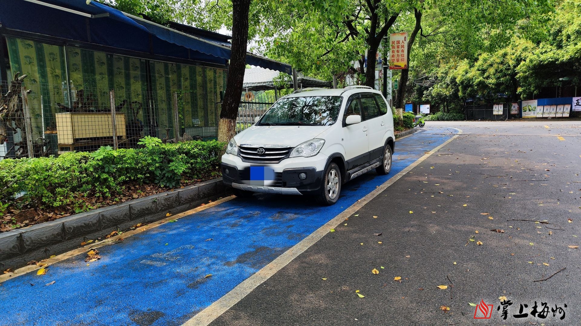在梅城百岁山景区内的停车场,大部分车辆都能遵守规则,整齐地停放在规划好的停车位上。记者注意到,现场剩余有不少车位,但一些小汽车车主为了贪图方便,直接将车辆停放在停车场门口的自行车绿道上,影响他人通行。
